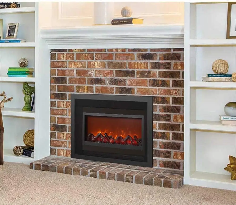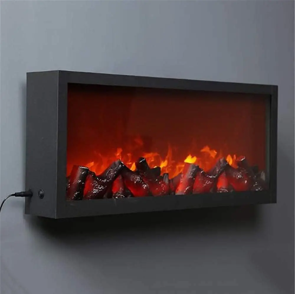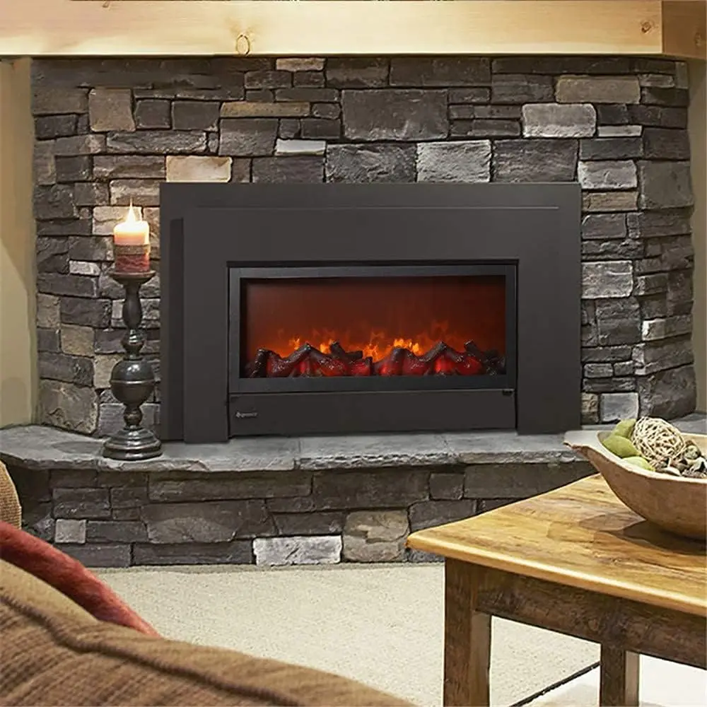 Luz de Llama Decorativa para Chimenea Eléctrica Empotrada Incorporada, con Juego de Leños Efecto Decorativo Negro - TopDealBox