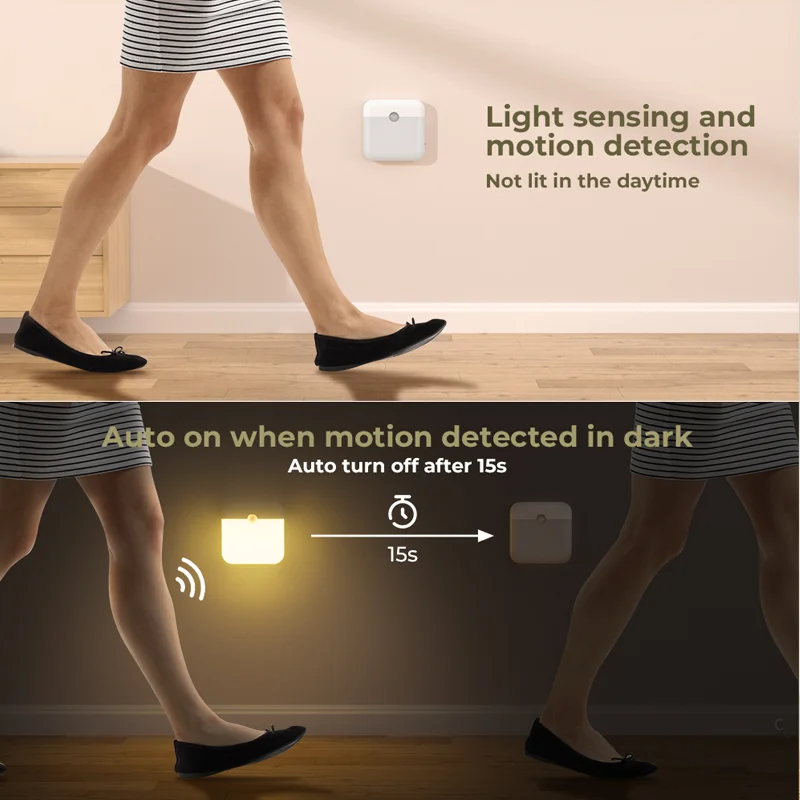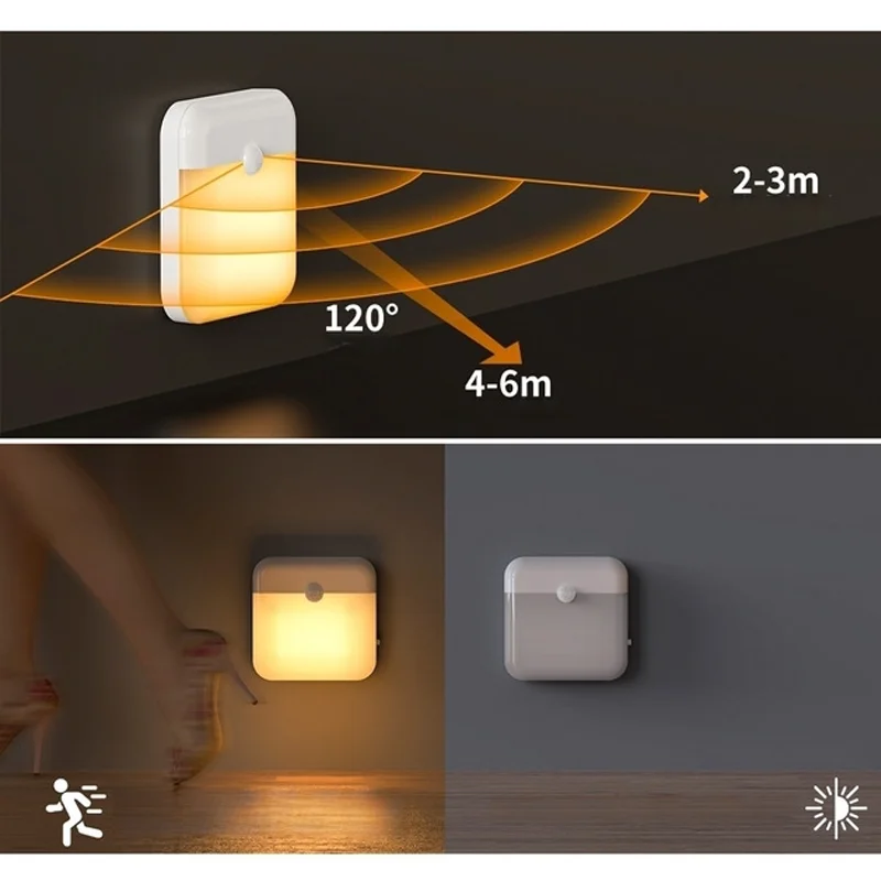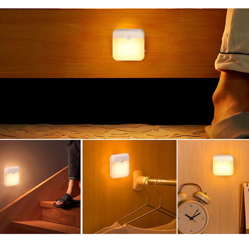Luz LED con Sensor de Movimiento, Lámpara Cuadrada con Carga USB para Dormitorio, Cocina, Escalera, Pasillo, Armario, Iluminación Nocturna - TopDealBox