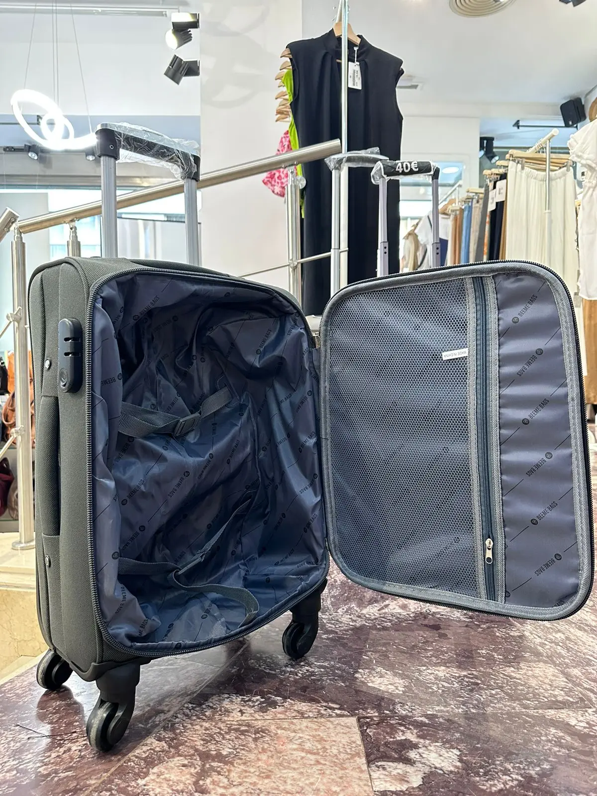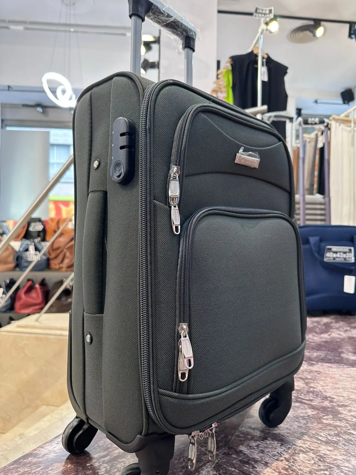 ♡Vista rápidaMaleta de Lona con 4 ruedas 360° y Código de Seguridad. ¡Equipaje ideal para Viajes en cortos y largos en avión! Color AZUL OSCURO69.59 EUREUR 165.99Destacado★★★★★4.4