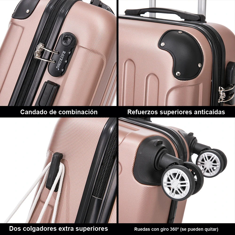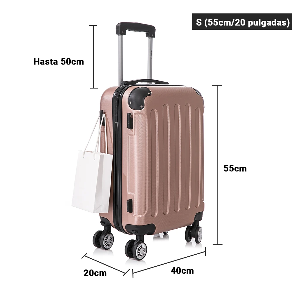 Maleta Cabina ABS 55x40x20cm (40L) - Equipaje de Mano Trolley pequeña - Ryanair Vueling - Rosadorada/Negro/AzulMarino/Amarillo/RosaClaro/Turquesa/Plata/Rojo - TopDealBox