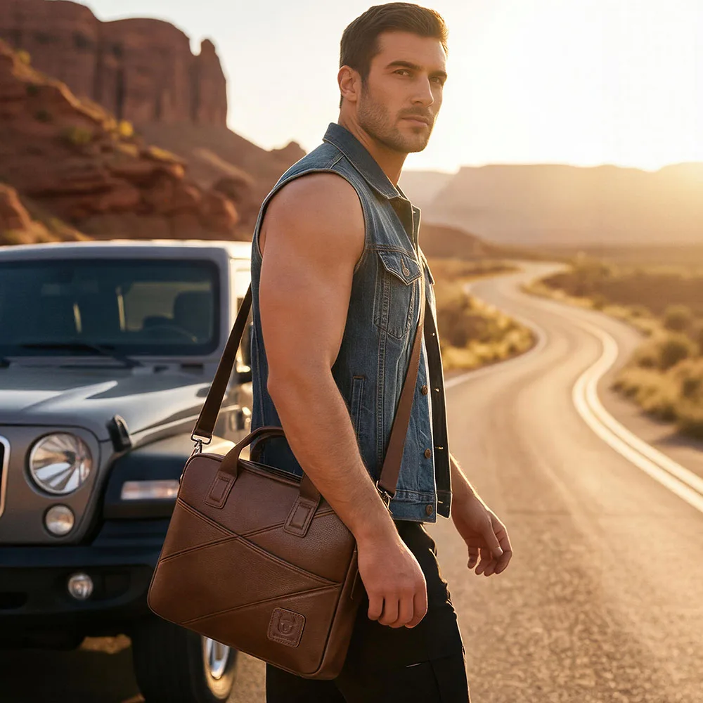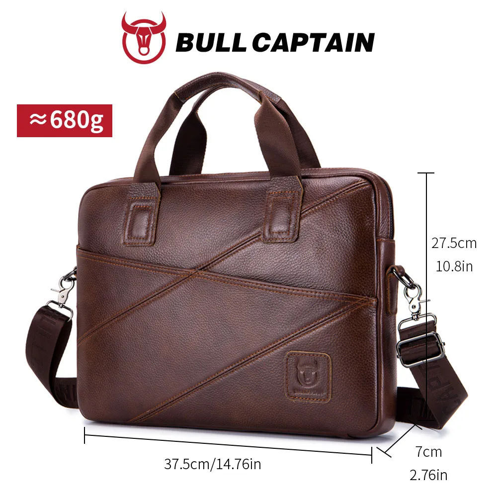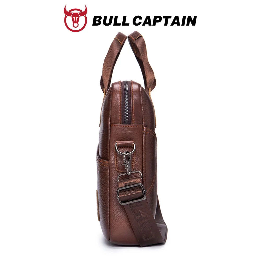 Maletín de cuero para hombre BULLCAPTAIN con bolso multifuncional de gran capacidad, bolso de negocios para ordenador, bolso tipo cartera para hombre - TopDealBox