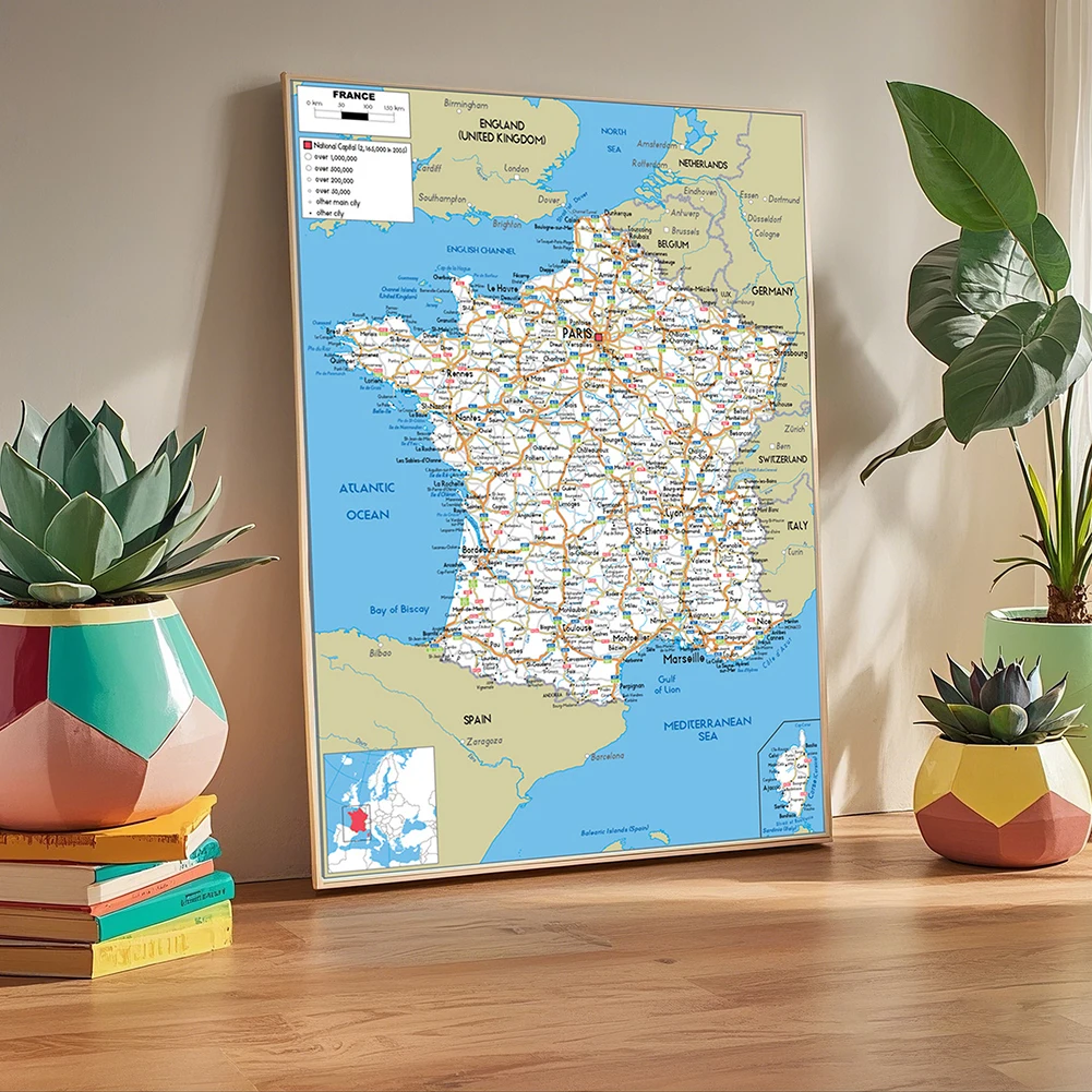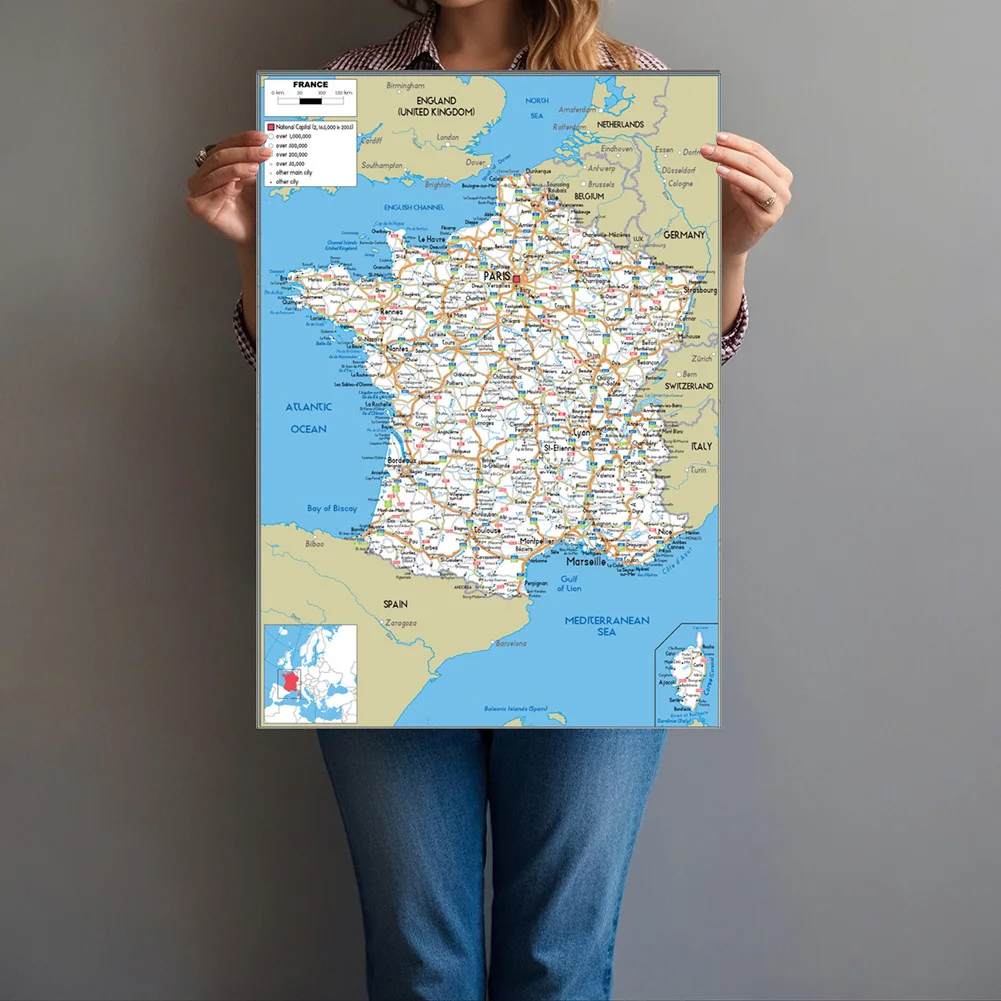 Inicio > Material escolar y de oficina > Mapas y atlas Mapa de Francia en inglés - Mapa de carreteras - Póster artístico de pared, pintura sin marco, impresiones y cuadros, decoración del hogar, tapiz de pared Información de envío