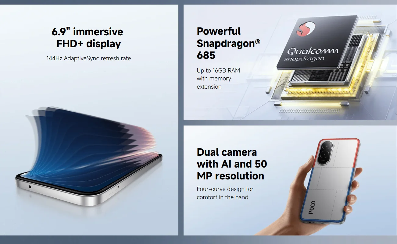 ♡Vista rápida【Marca +】POCO M7 versión Global teléfono móvil 6,9 ''144Hz FHD + DotDisplay 7000mAh batería 50MP cámara NFC Snapdragon 685121.34 EUREUR 1010.80Destacado★★★★★★4.9
