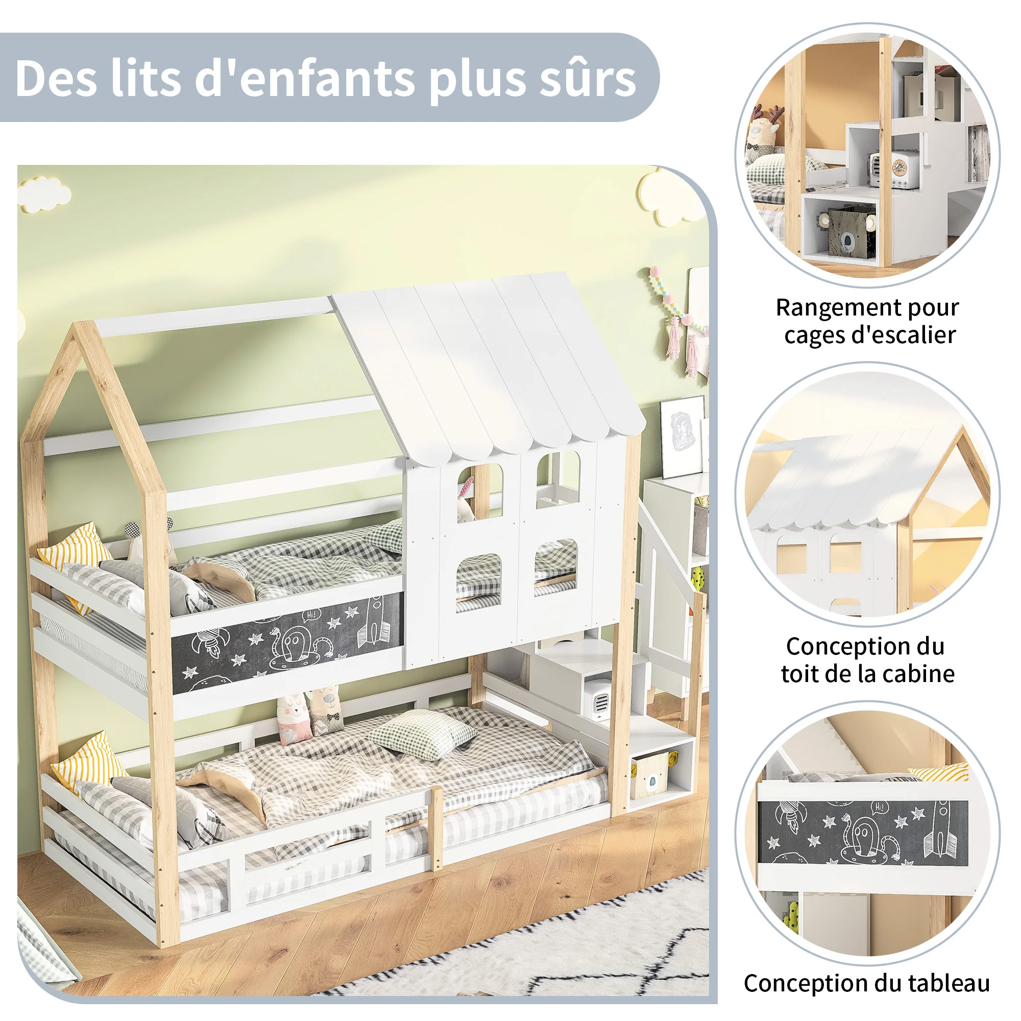 ♡Vista rápidaCama doble 90x200cm con escaleras y pizarra, cama con valla, cama con diseño de techo infantil, cama alta para niños - blanco321.77 EUREUR 624.26Destacado