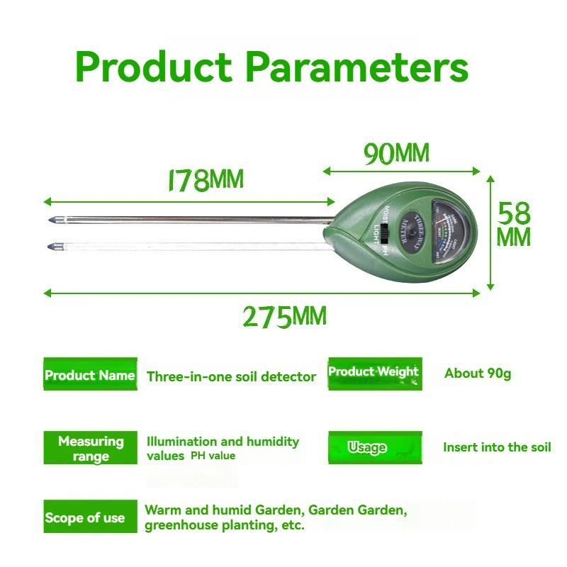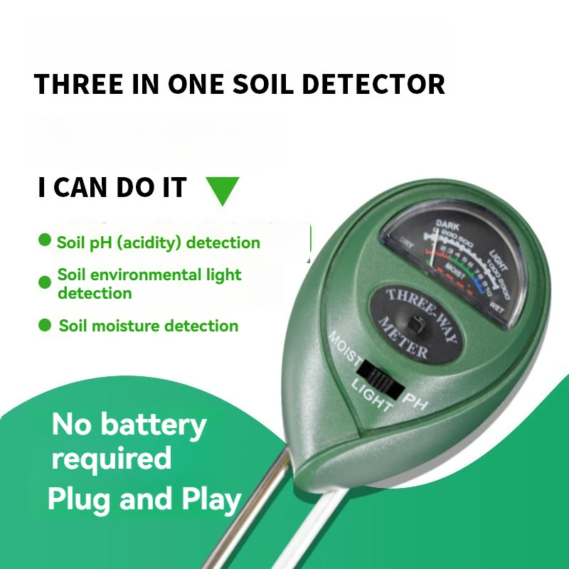 Medidor de suelo de cabeza redonda tres en uno, Detector de Ph, medidor de Ph, probador de medición de humedad y luminosidad, jardinería del suelo - TopDealBox