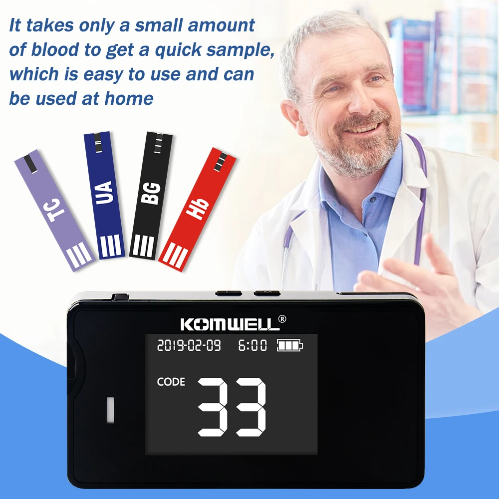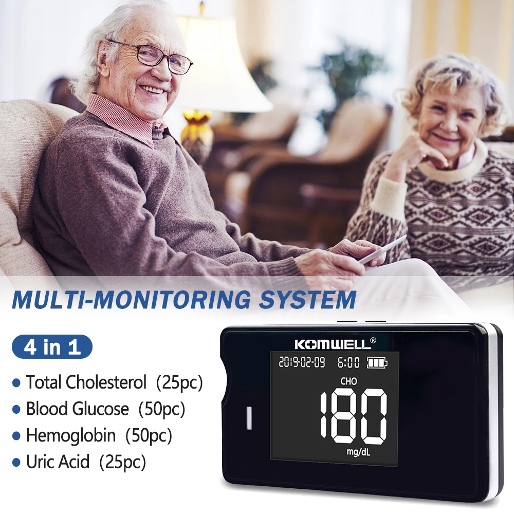 Medidor médico multifunción 4 en 1, kit de tiras reactivas de glucosa en sangre para colesterol, ácido úrico y hemoglobina, para Diabetes y gota con lancetas - TopDealBox
