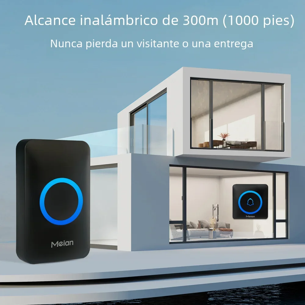 ♡Vista rápidaMeian-timbre inalámbrico para exteriores, timbre de bienvenida para el hogar inteligente, timbre de puerta impermeable IP65, kit de timbre, 60 tonos de llamada, alarma de flash LED8.29 EUREUR 66.09Destacado★★★★★★4.8