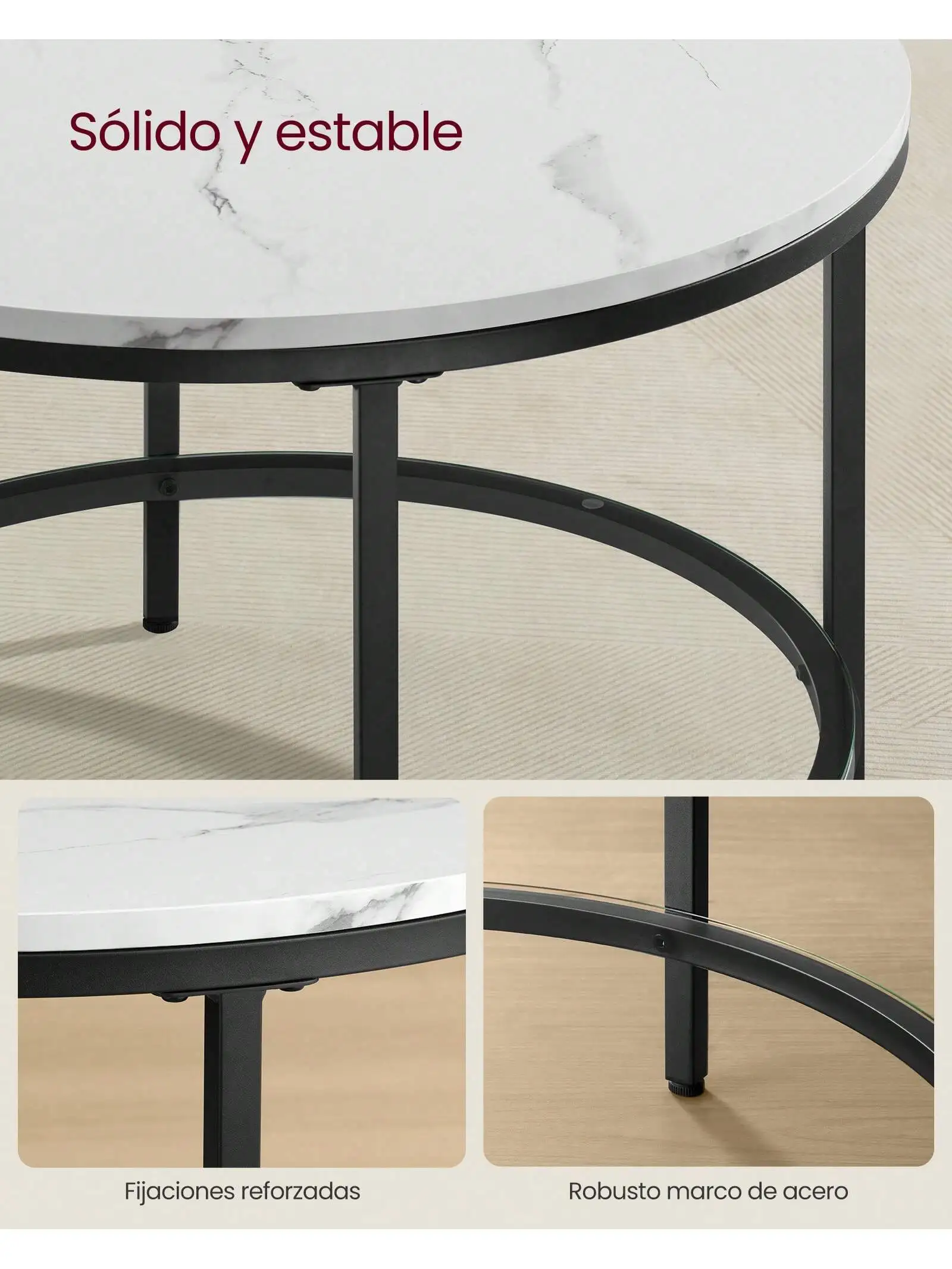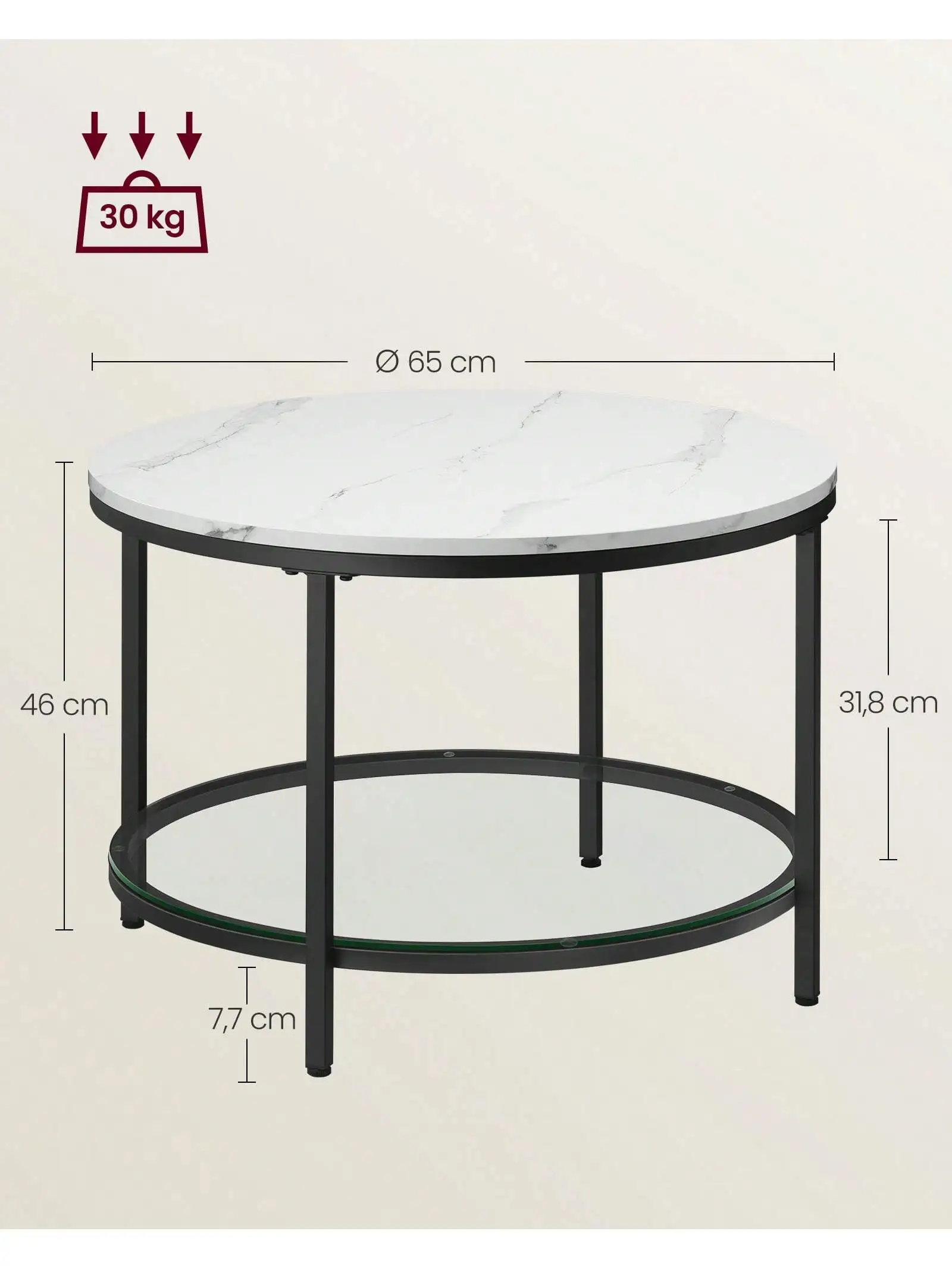 Mesa de centro VASAGLE: parte superior redonda de mármol de imitación, estante de cristal Montaje fácil, estilo moderno para sala de estar. Mármol Blanco/tinta negra - TopDealBox