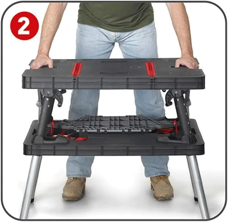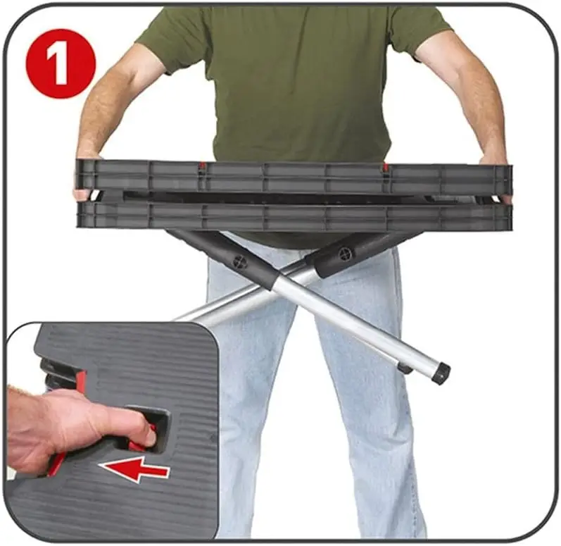 ↑- Mesa de herramientas plegable; 85 x 55,5 x 11,2 cm (cerrada) - 91 x 55,5 x 75,5 cm (abierto); Resistencia 450 kg; Color: negro - TopDealBoxEscalera telescópica de 6,2 M, 20,3 pies con gancho desmontable, aluminio, EN131, carga máxima de 150 kg para loft, interior, exterior, oficina, casa
