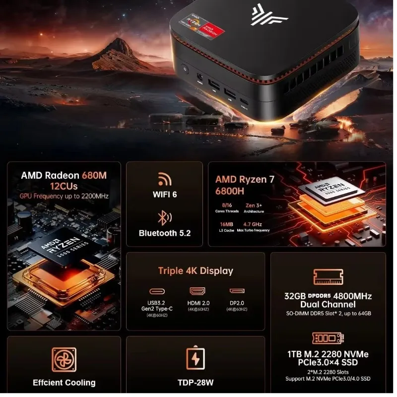 ♡Vista rápidaACEMAGIC K1 mini PC AMD Ryzen 5 7430U 32GB RAM 512GB SSD WIFI 6+BT5.2 integrado Mini PC para oficina y negocios HDMI 2.0 × 1 (4K@60Hz)346.99 EUREUR 6740.25Destacado★★★★★5.0