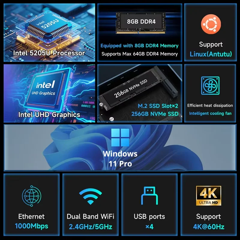 ♡Vista rápidaMicroData-Mini PC N100, 8GB, 256GB,16G, 512G, Intel 12. ª generación, 4 núcleos, pantalla Dual, salida 4K, DDR5, WIFI, 2,4G/5G, BT4.2115.38 EUREUR 258.94Destacado★★★★★★4.9