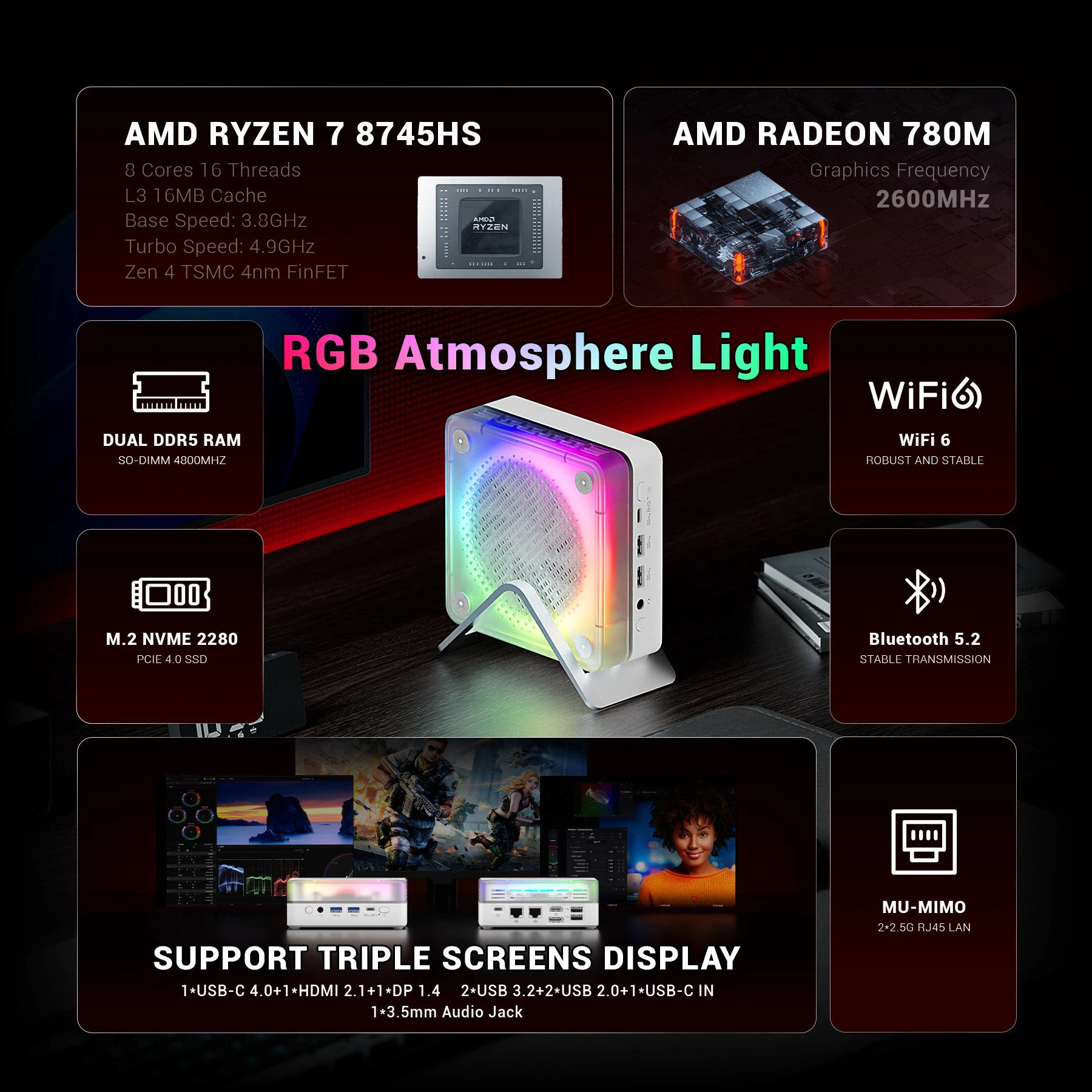♡Vista rápidaMini PC CHUWI Aubox con AMD Ryzen7 8745HS, Oculink, DDR5, Sin RAM, Sin ROM, Sin SO, Computadora de Escritorio para Juegos, WiFi 6, BT 5.2332.96 EUREUR 665.92Destacado★★★★★5.0