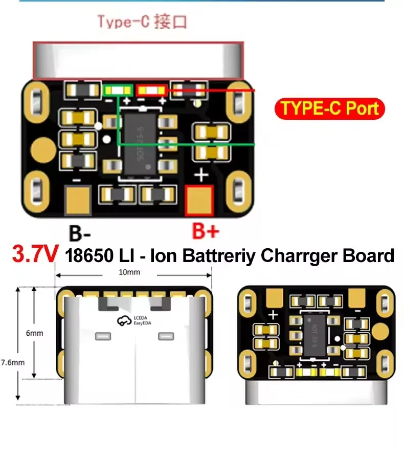 Módulo de Placa de Carga para Baterías de Litio Mini de 1-20 Piezas, 3.7V 4.2V, Placa de Protección para Baterías de Litio 18650, Interfaz Tipo-C - TopDealBox