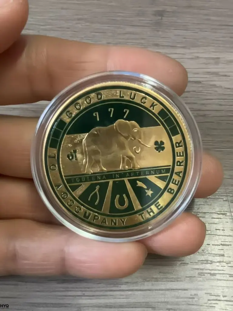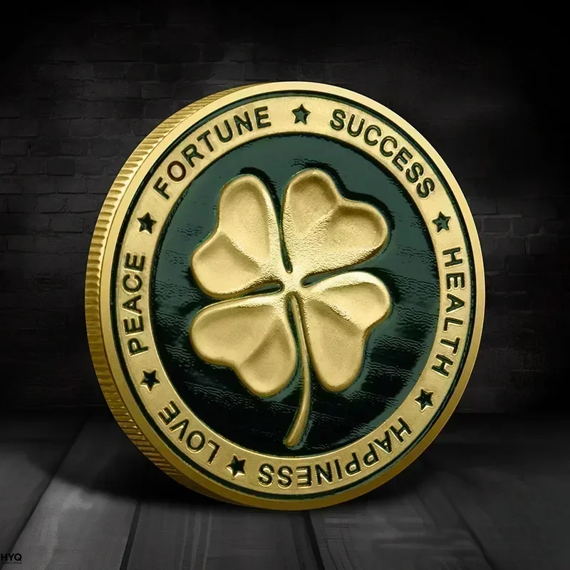 Moneda Conmemorativa de Metal Pintada con Trébol de Cuatro Hojas de la Suerte, 4 cm, Redonda, para Decoración del Hogar - TopDealBox