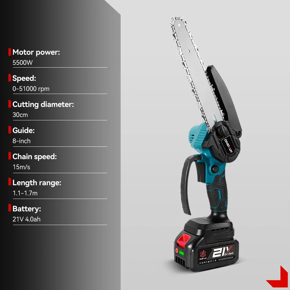 Motosierra eléctrica inalámbrica ONEVAN de 8 pulgadas 2 en 1, sierra para ramas altas, herramienta de poda para jardín, compatible con batería Makita de 18V. - TopDealBox