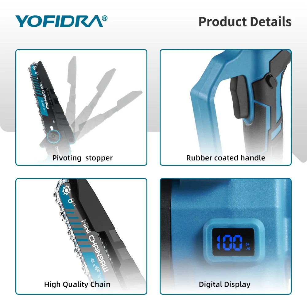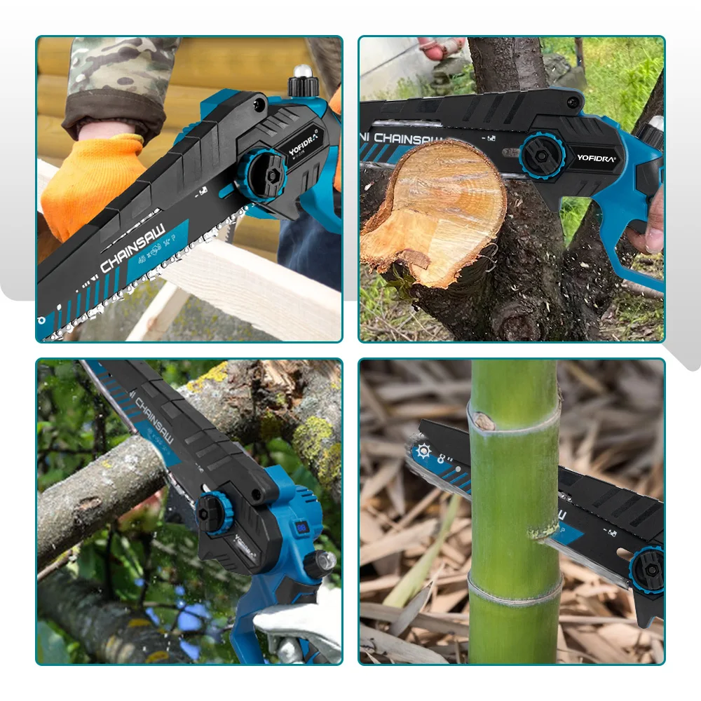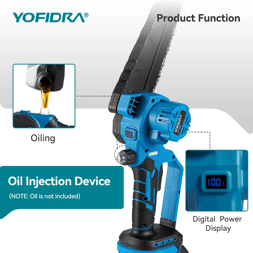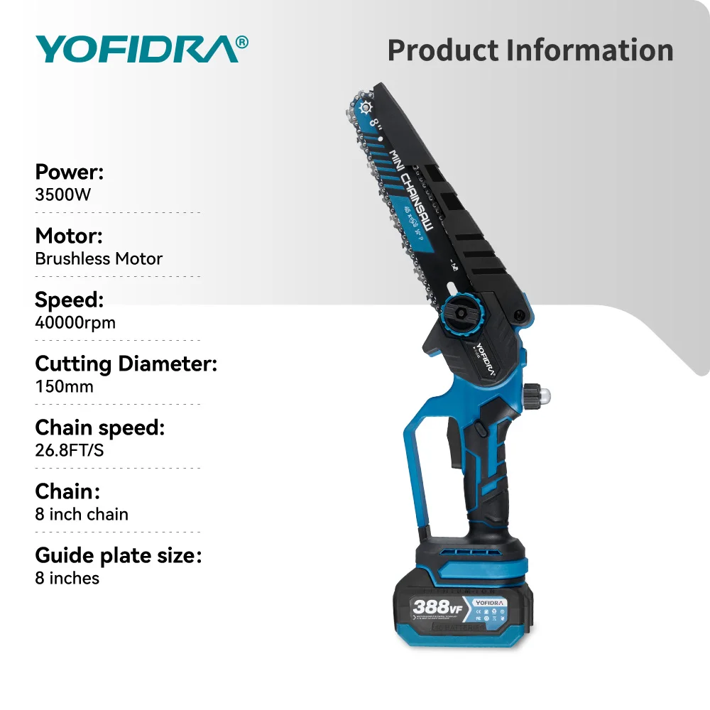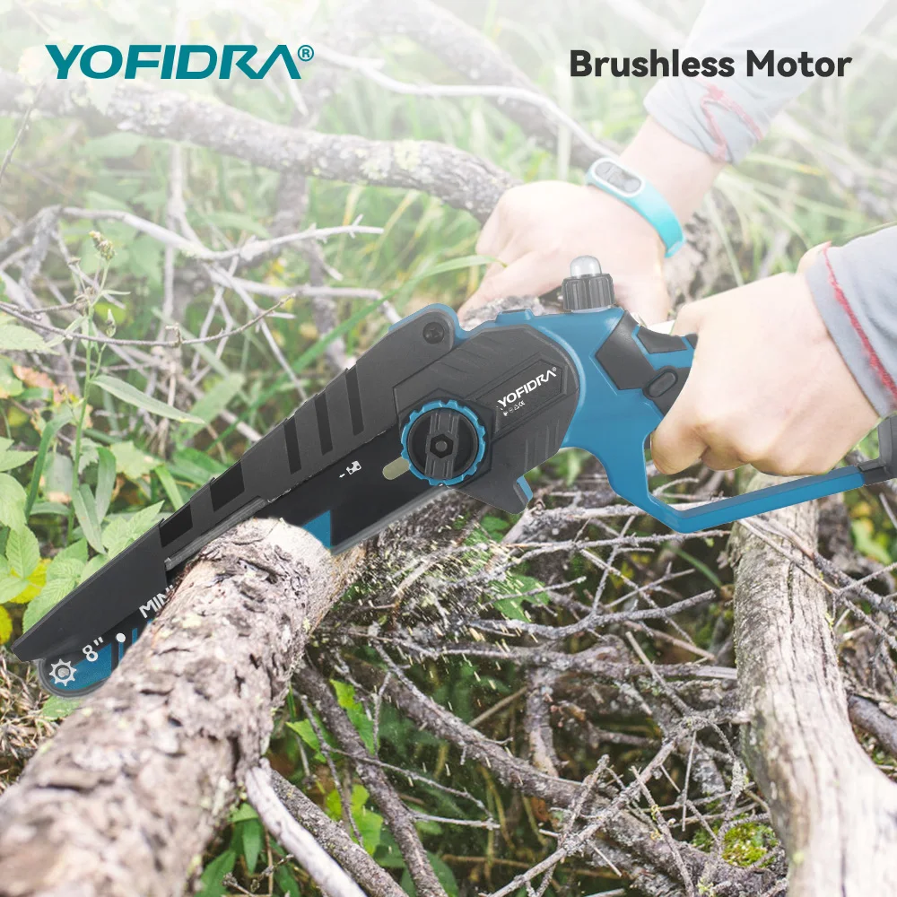 Motosierra eléctrica sin escobillas YOFIDRA de 8 pulgadas, 3500W, sierra de cadena de poda manual para carpintería, herramienta eléctrica para Pin de batería Makita - TopDealBox