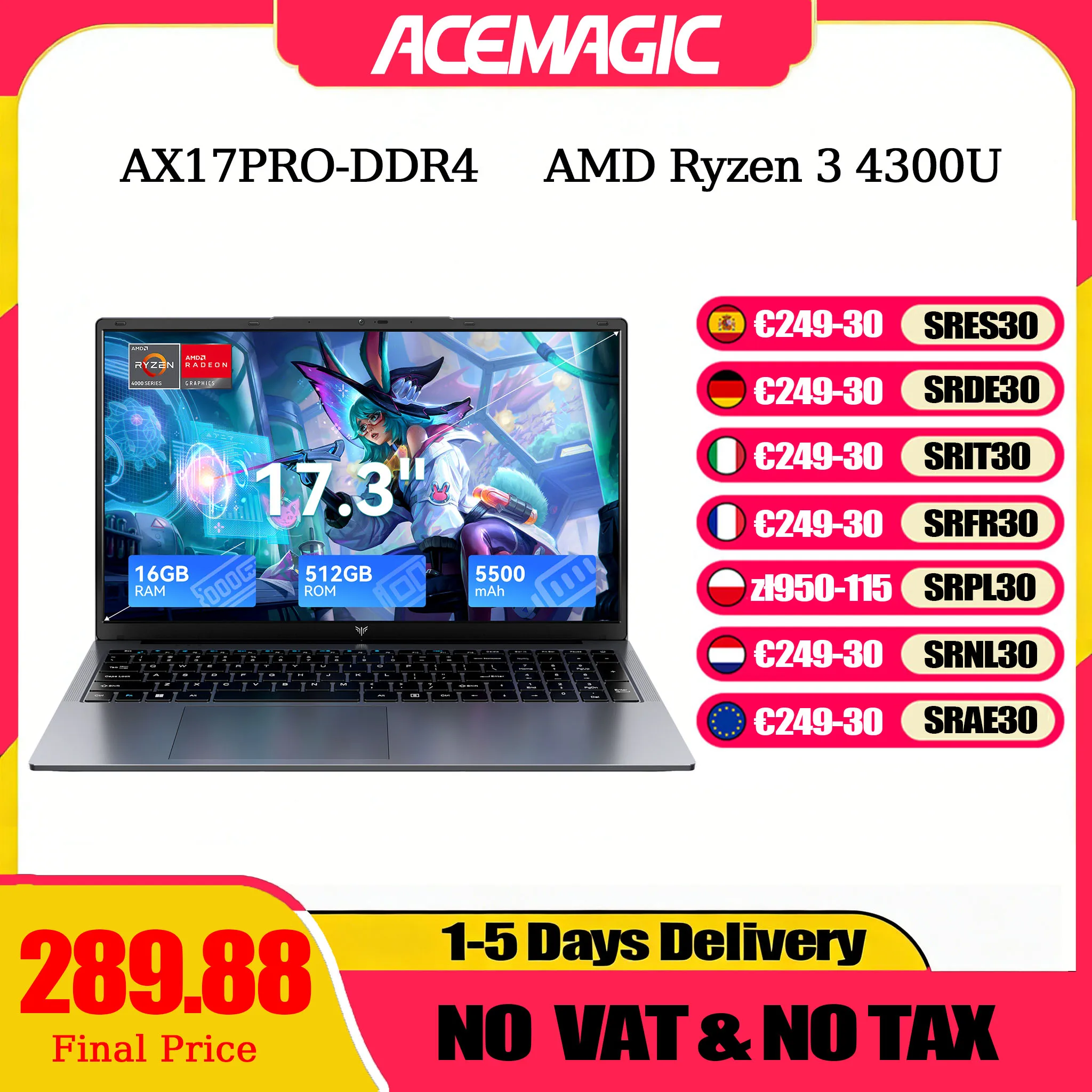 ♡Vista rápidaACEMAGIC AX17Pro ordenador portátil AMD Ryzen 3 4300U Windows portátil 17,3 pulgadas IPS 16GB DDR4 512GB NVMe SSD teclado numérico333.02 EUREUR 1157.46Destacado★★★★★5.0