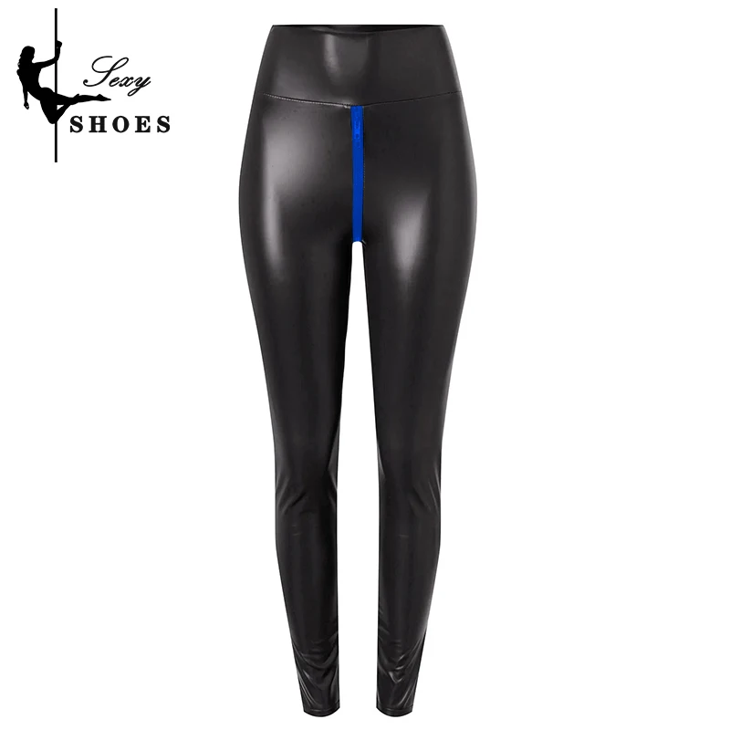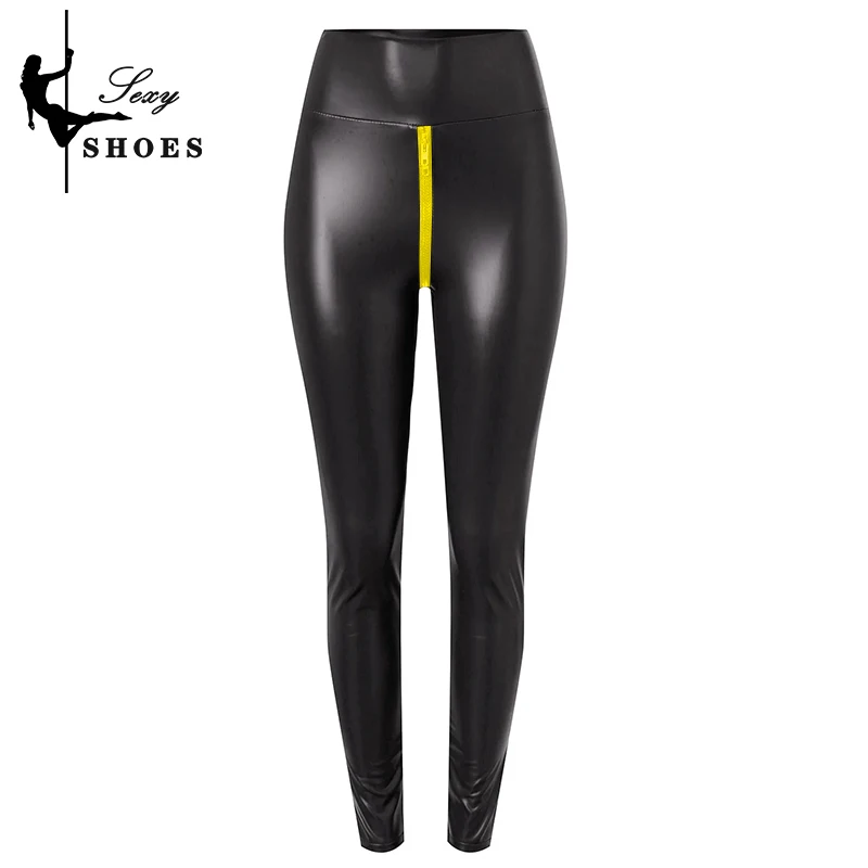 Pantalones ajustados mate de alta elasticidad, pantalones cortos con entrepierna abierta de talla grande, pantalones ajustados exóticos para mujer, aspecto húmedo, cremallera personalizada delgada - TopDealBox