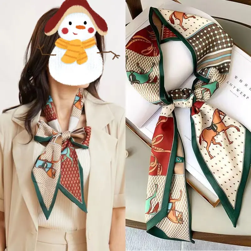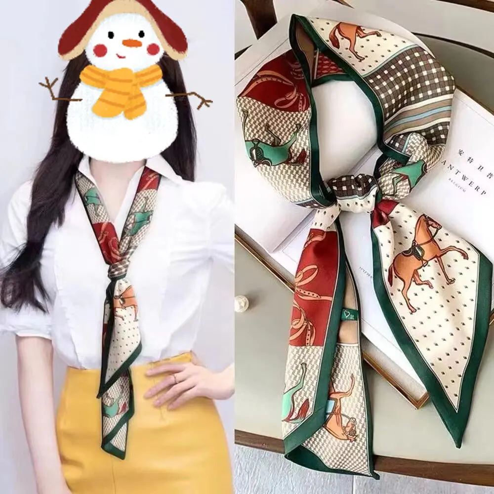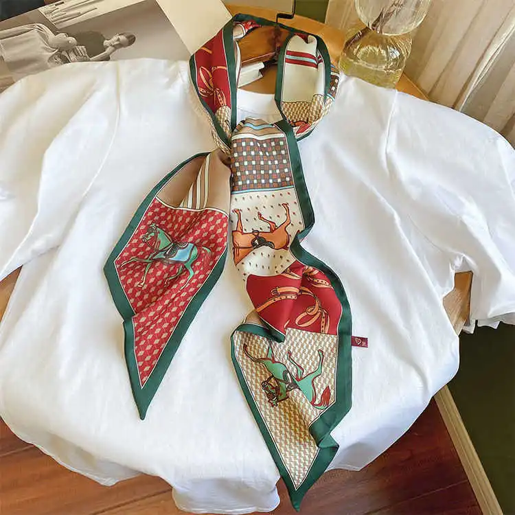 Pañuelo largo de seda para mujer, bolsa con lazo, pañuelos ajustados para el cuello, diadema, Foulard con estampado de caballo, cinta para pañuelo para mujer, primavera 2021 - TopDealBox