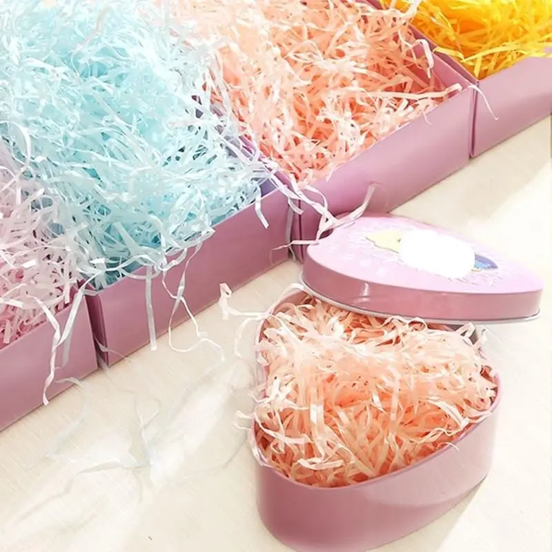 Cajas de dulces de confeti de papel triturado de rafia colorida de 100g, Material de relleno de caja de regalo DIY, decoración de relleno de embalaje de regalo de fiesta de tejido - TopDealBox