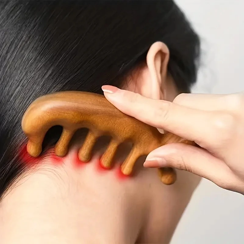 Peine de masaje meridiano de cinco dientes con forma de delfín de sándalo exquisito, masajeadores del cuero cabelludo para relajación y cuidado del cabello, madera, 1 ud. - TopDealBox