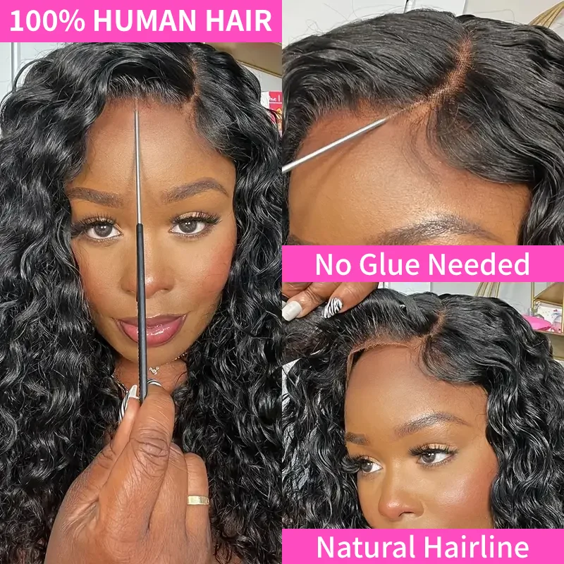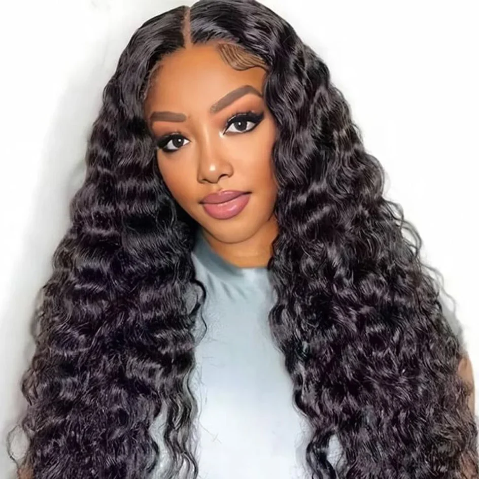 Peluca con malla frontal rizada 4x4 5x5, sin pegamento, 220 de densidad, Color Natural, onda profunda, precorte, pelucas de encaje HD brasileñas, cabello humano ondulado con agua - TopDealBox
