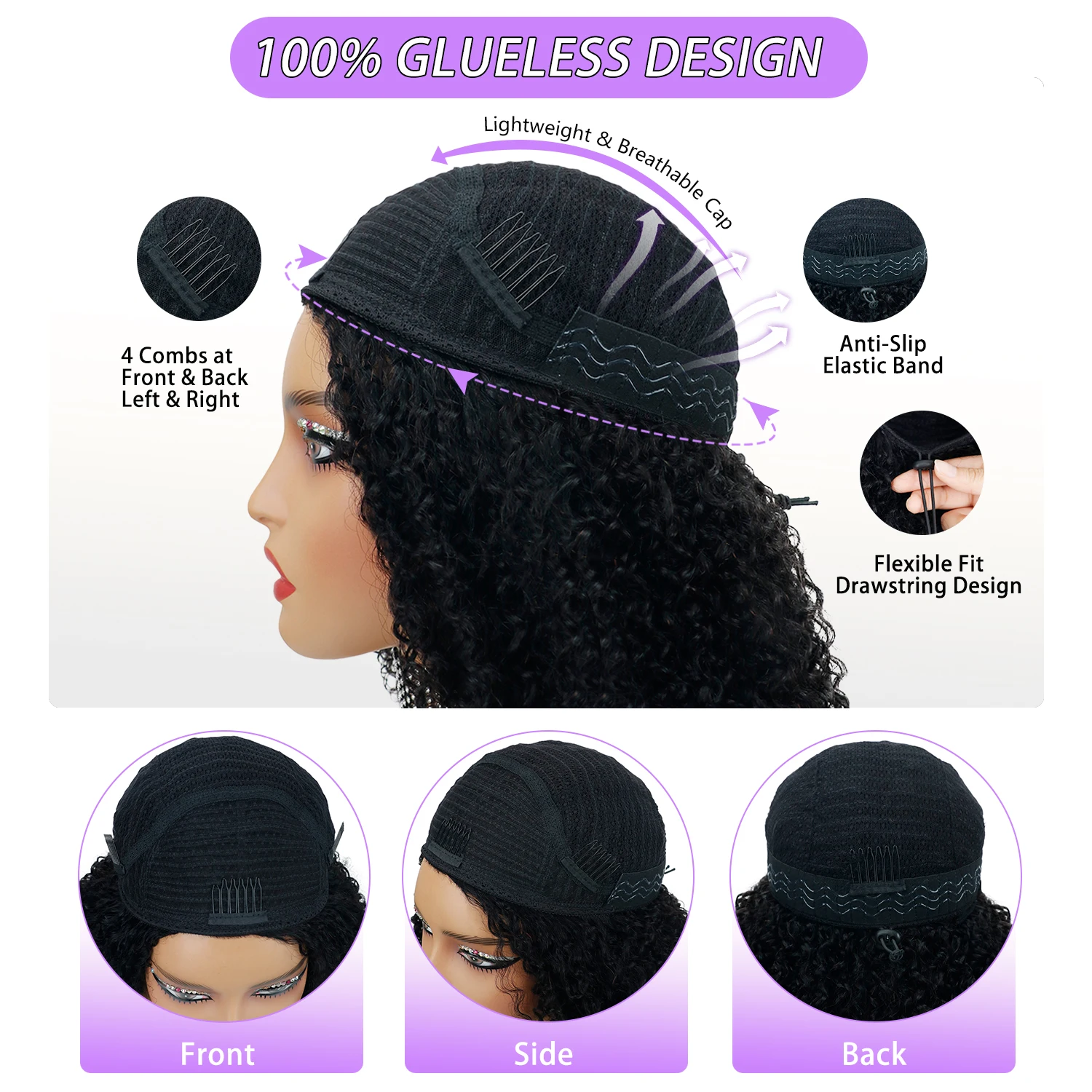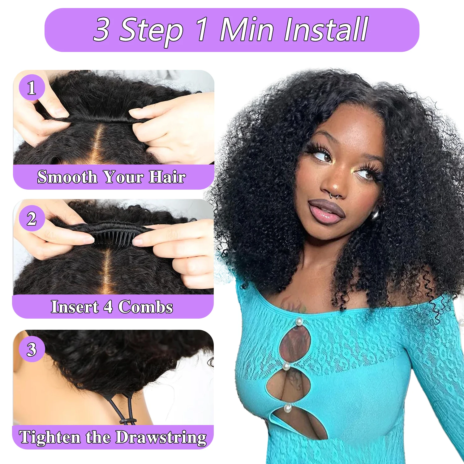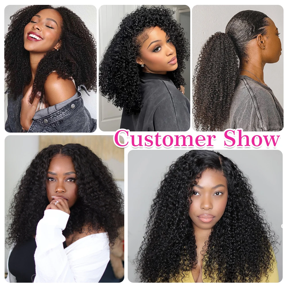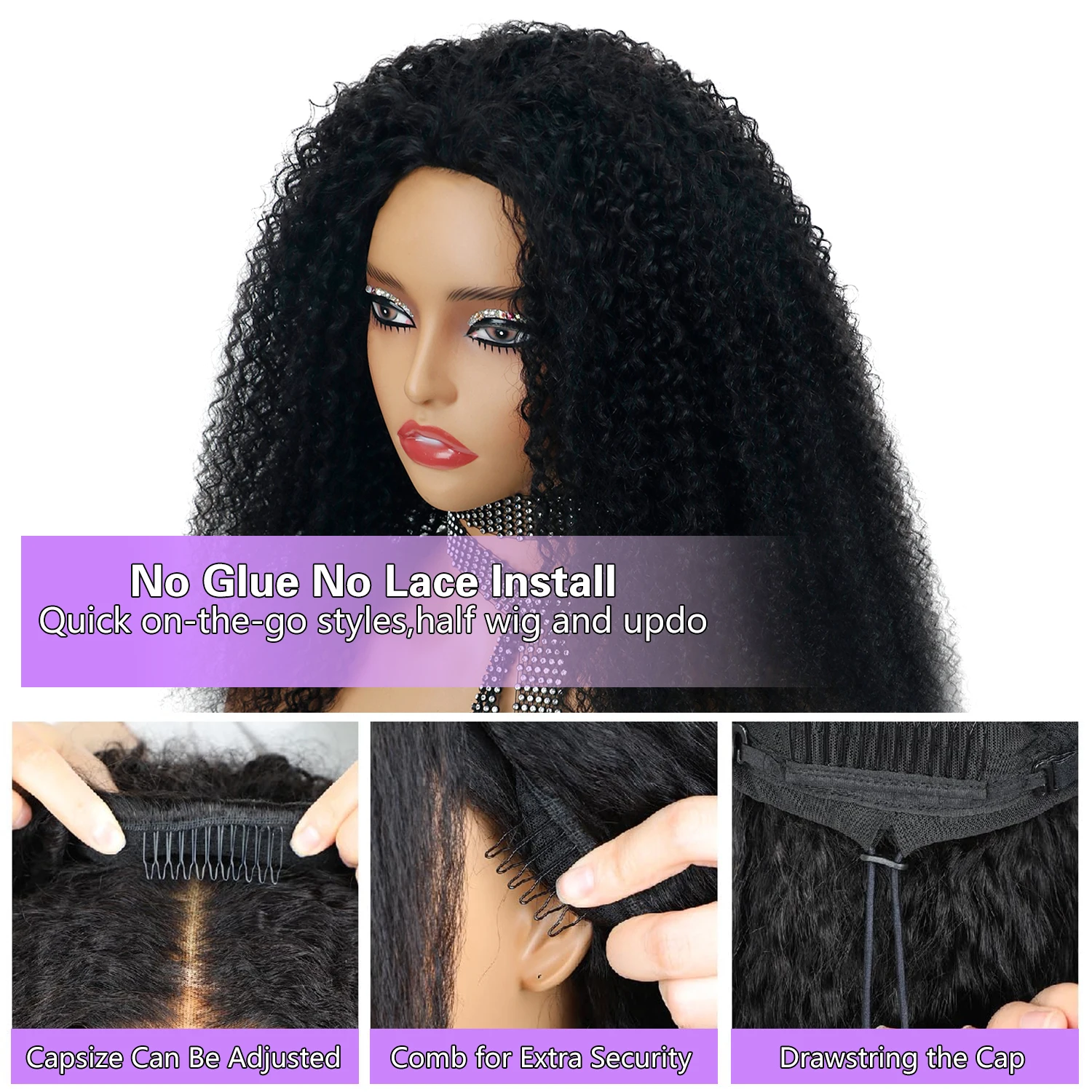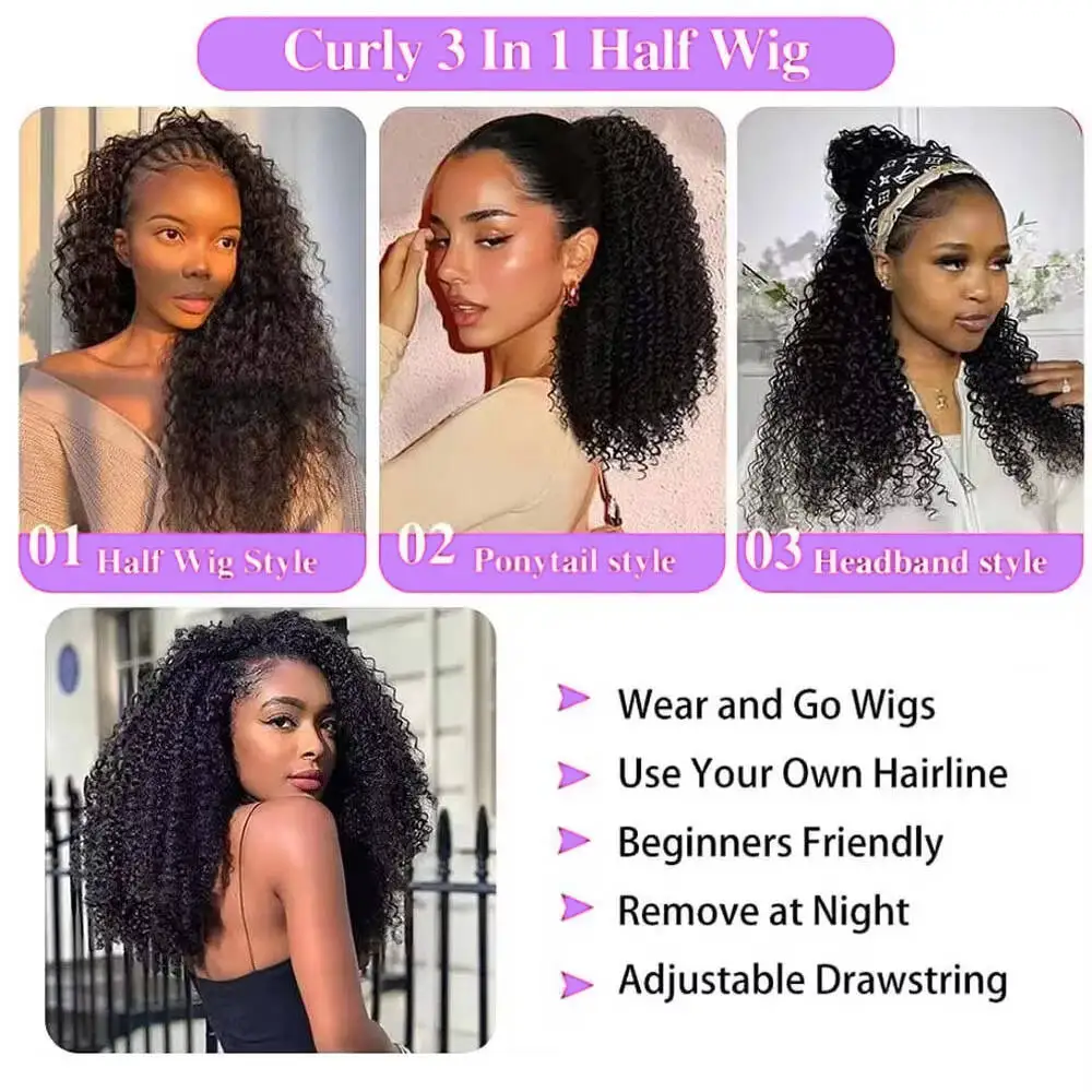 Pelucas de cabello humano 3 en 1, rizadas a la mitad, sin pegamento, 220% de densidad, con cordón ajustable, clips sin costuras, hechas a máquina, media peluca. - TopDealBox