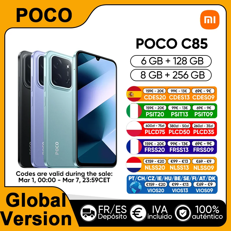 Versión Global POCO C85 Smartphone MediaTek Helio G81-Ultra procesador 6,9 "pantalla Dot Drop 6000mAh 33W carga rápida NFC IP64 - TopDealBox
