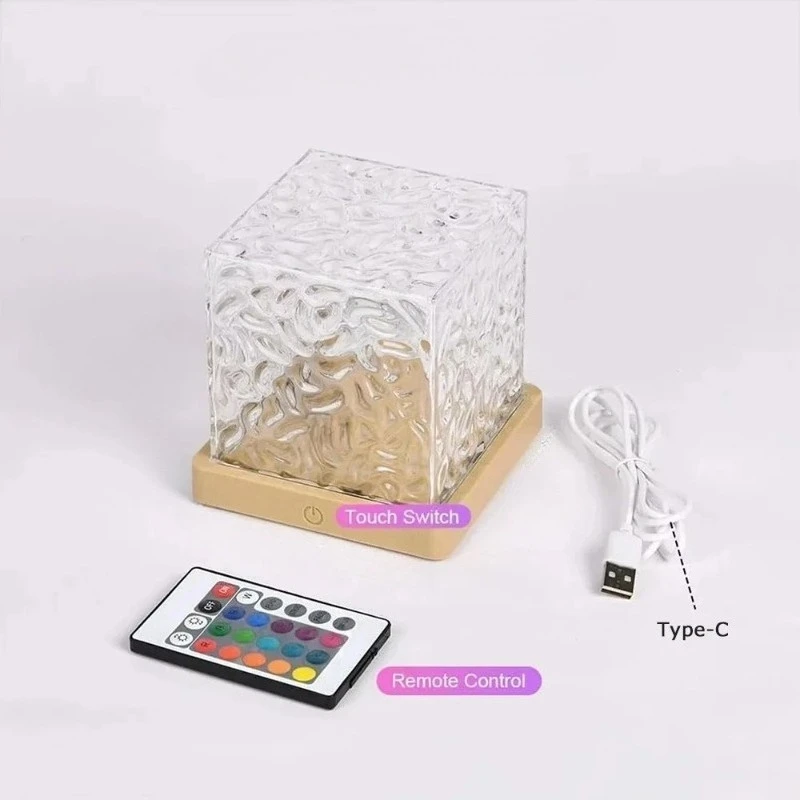 Proyector de Luz Nocturna con Efecto de Ondas de Agua Giratorias y Dinámicas, Lámpara de Cristal con Llama para Sala de Estar, Estudio, Dormitorio, Luz Giratoria - TopDealBox