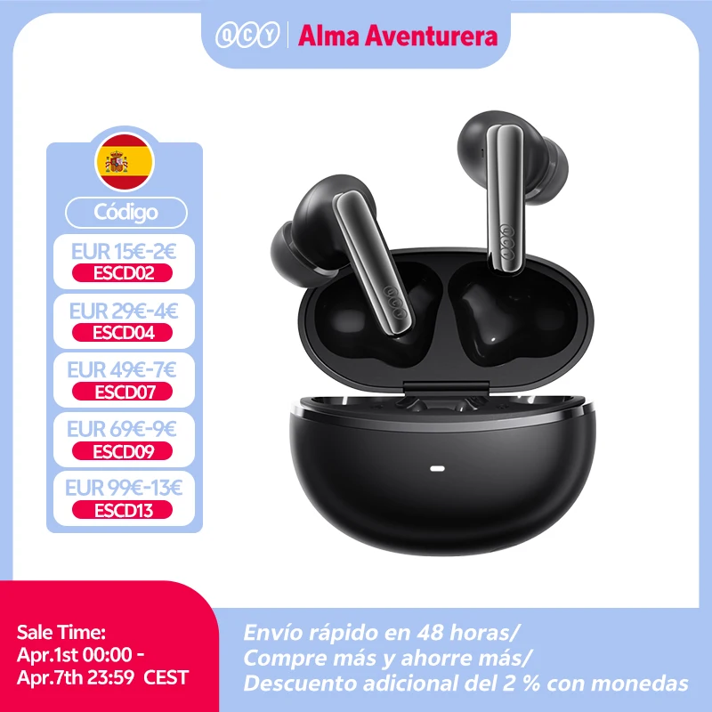 ♡Vista rápidaQCY-auriculares inalámbricos con Bluetooth 5,3, dispositivo de Audio de alta resolución, LDAC, 6 micrófonos, AI, HD, conexión multipunto, AilyBuds Pro + ANC, HT1031.15 EUREUR 91.55Destacado★★★★★★4.7