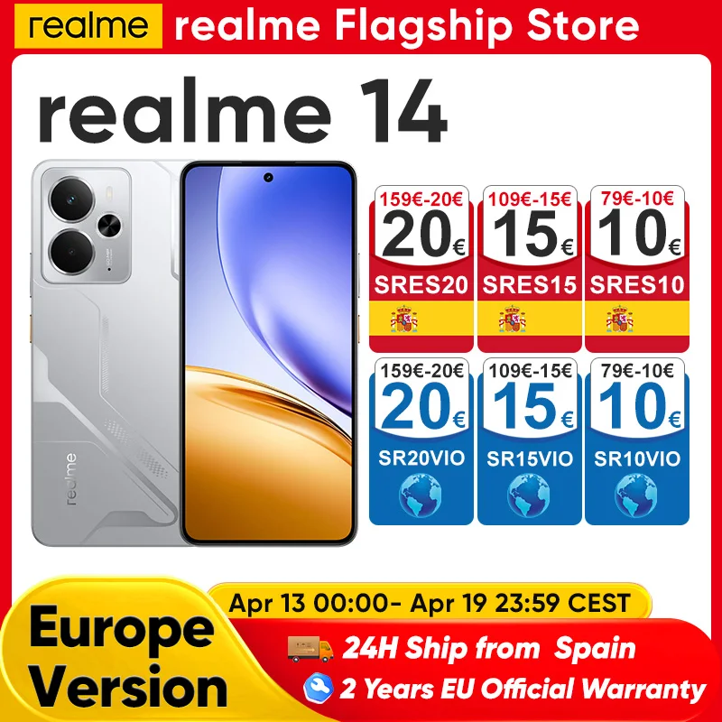 ♡Vista rápidaTeléfono Inteligente realme 14 5G, Snapdragon 6 gen 4, Pantalla AMOLED de 2025 pulgadas, 6,67Hz, batería Titan de 120 mAh, cámara OIS de 50MP, estreno mundial, 6000197.22 EUREUR 486.38Destacado★★★★★★4.8