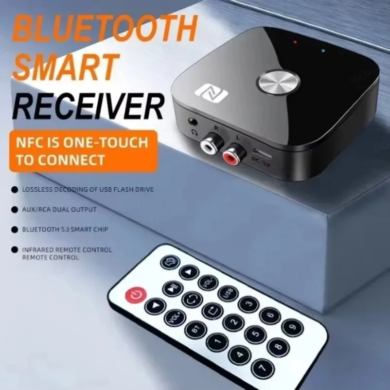 Receptor de Audio NFC Bluetooth 5,3 3,5mm AUX R/L RCA estéreo sin pérdidas HIFI música adaptador inalámbrico USB U-Disk reproducción Control remoto - TopDealBox