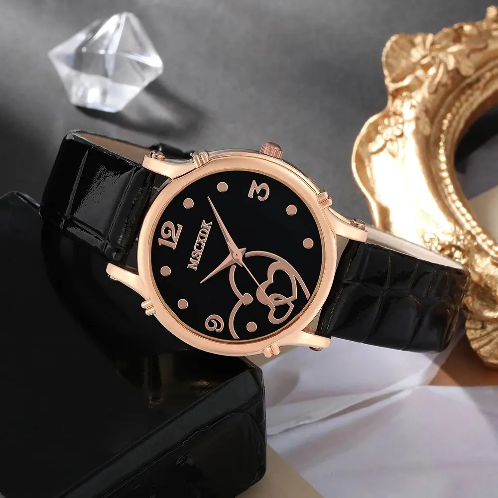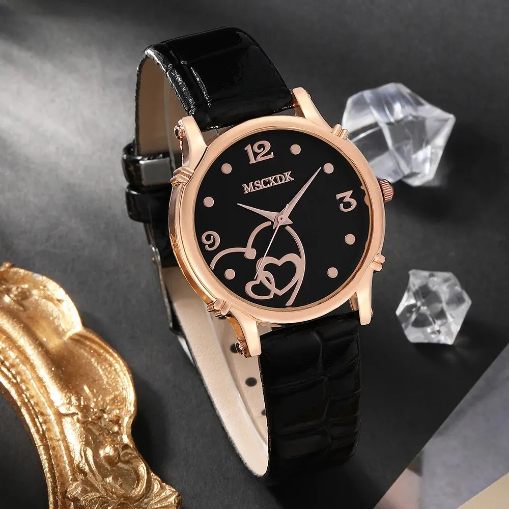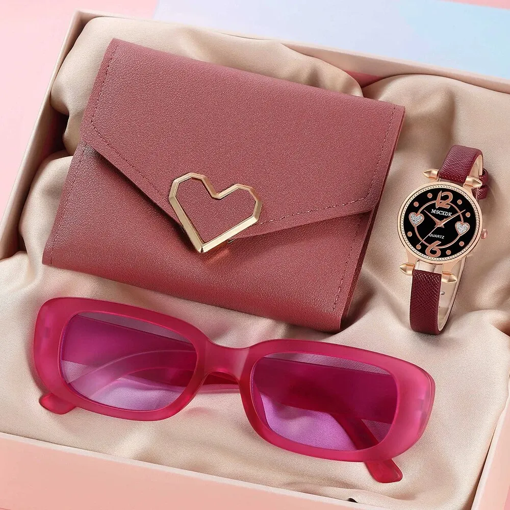 Relojes con correa de cuero a la moda para mujer y billetera con corazón Simple, conjunto de gafas de sol, relojes de pulsera de cuarzo para mujer, vestido para mujer - TopDealBox