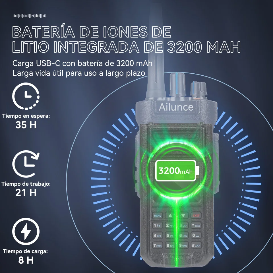 Retevis Ailunce HD2 walkie talkie DMR digital walkie tolkie largo alcance profesional emisora radioaficionado Compatible con Bluetooth walkie-talkies UHF VHF ham radio caza comunicación Resistente al agua IP67 - TopDealBox