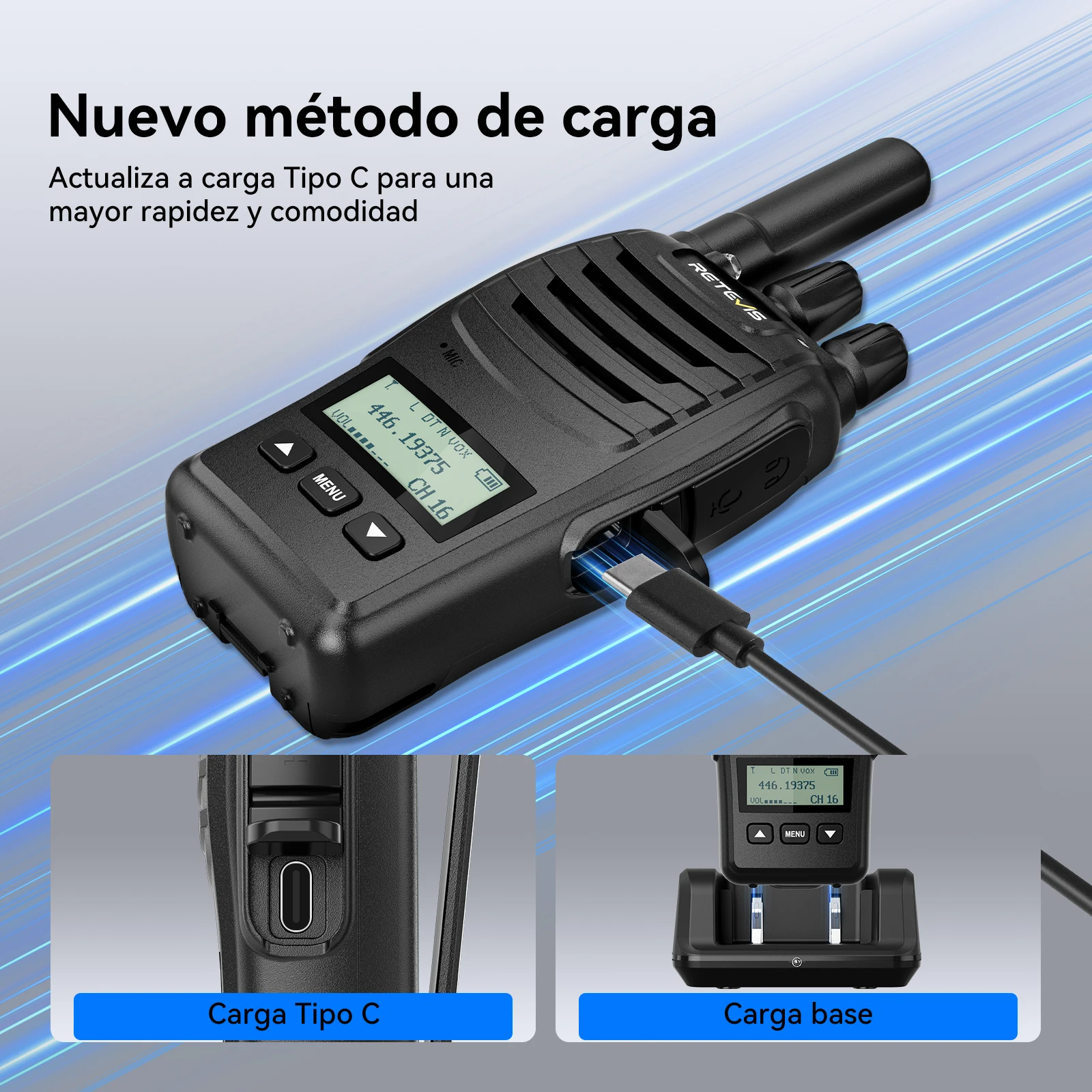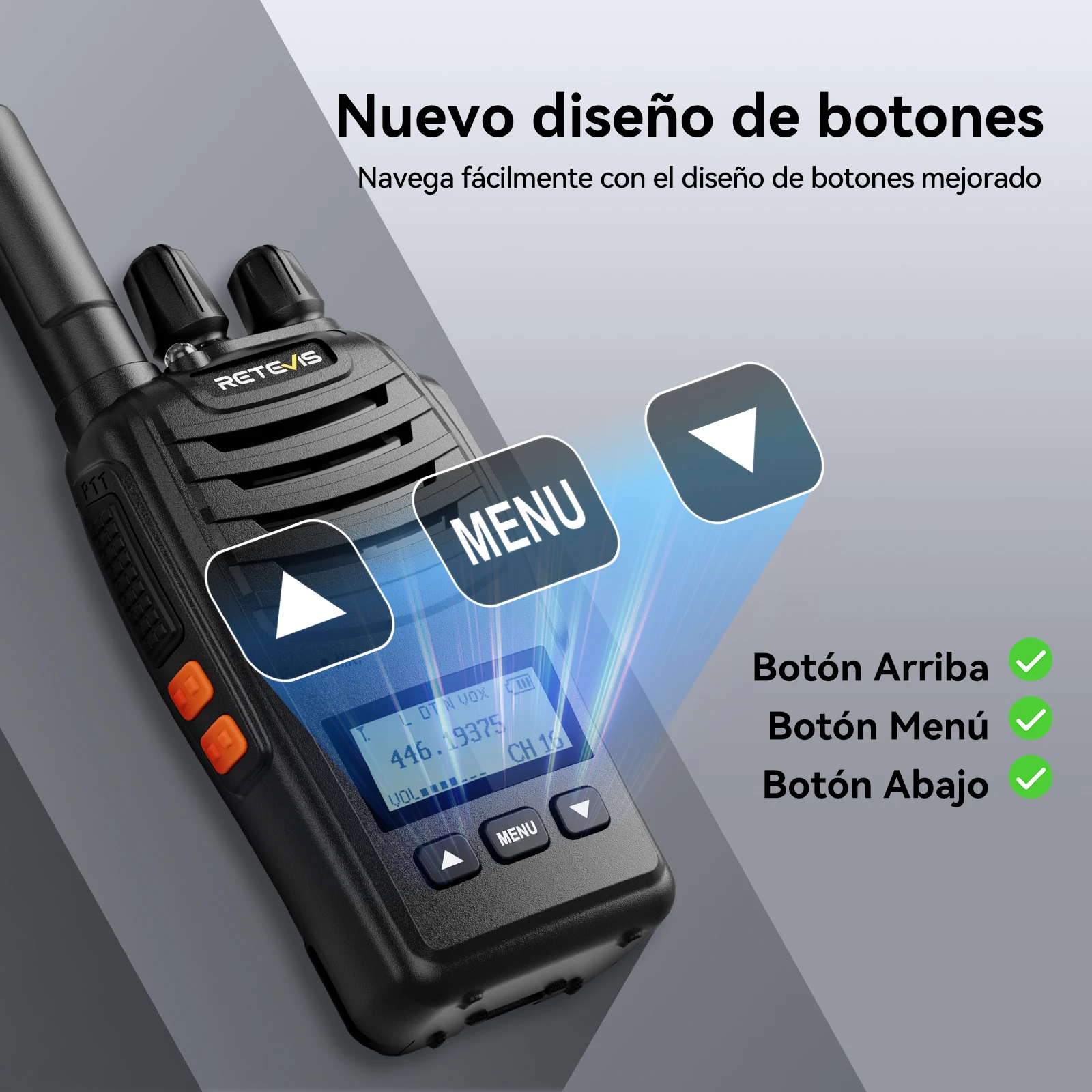 ♡Vista rápidaRETEVIS walkie talkie PMR RB617 RB17 Radio bidireccional comunicador ht PTT 2 uds 4400mAh para caza Hotel y restaurante63.99 EUREUR 73.82Destacado★★★★★4.4