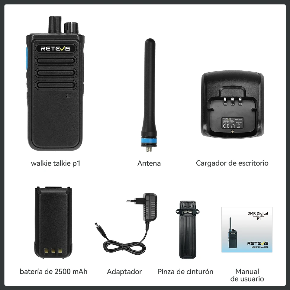 Retevis P1 Walkie Talkie Largo Alcance Emisora DMR, Digital Walkie-Talkies Profesional,AES256 Superhet Relé Radio,UHF Emisoras de Radioaficionado Largo Alcance,Radios de Comunicacion Largo Alcance Recargable - TopDealBox