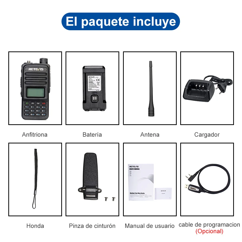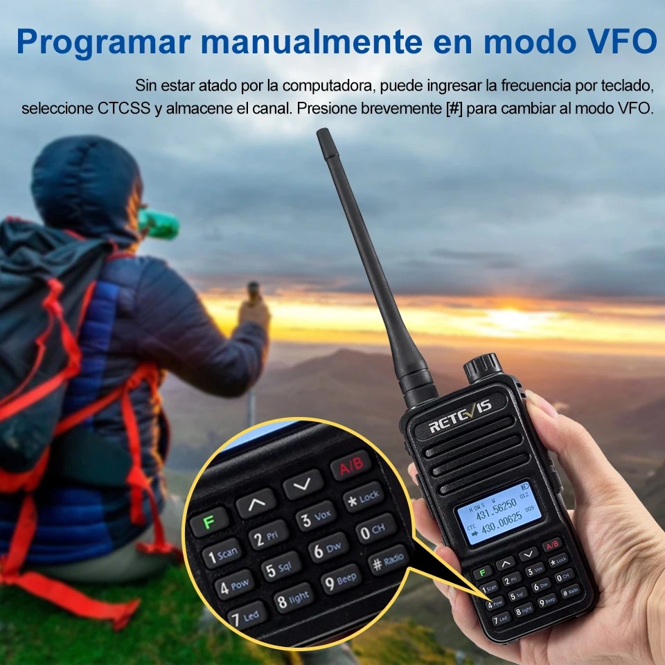 ♡Vista rápidaRetevis C1 walkie talkie largo alcance comunicación walkie-talkies emisora de radioaficionados walkie tolkie profesional VOX radio inalámbrico UHF VHF ham radio recargable emisoras de caza IP67 a prueba de agua59.39 EUREUR 127.86Destacado★★★★★★4.7