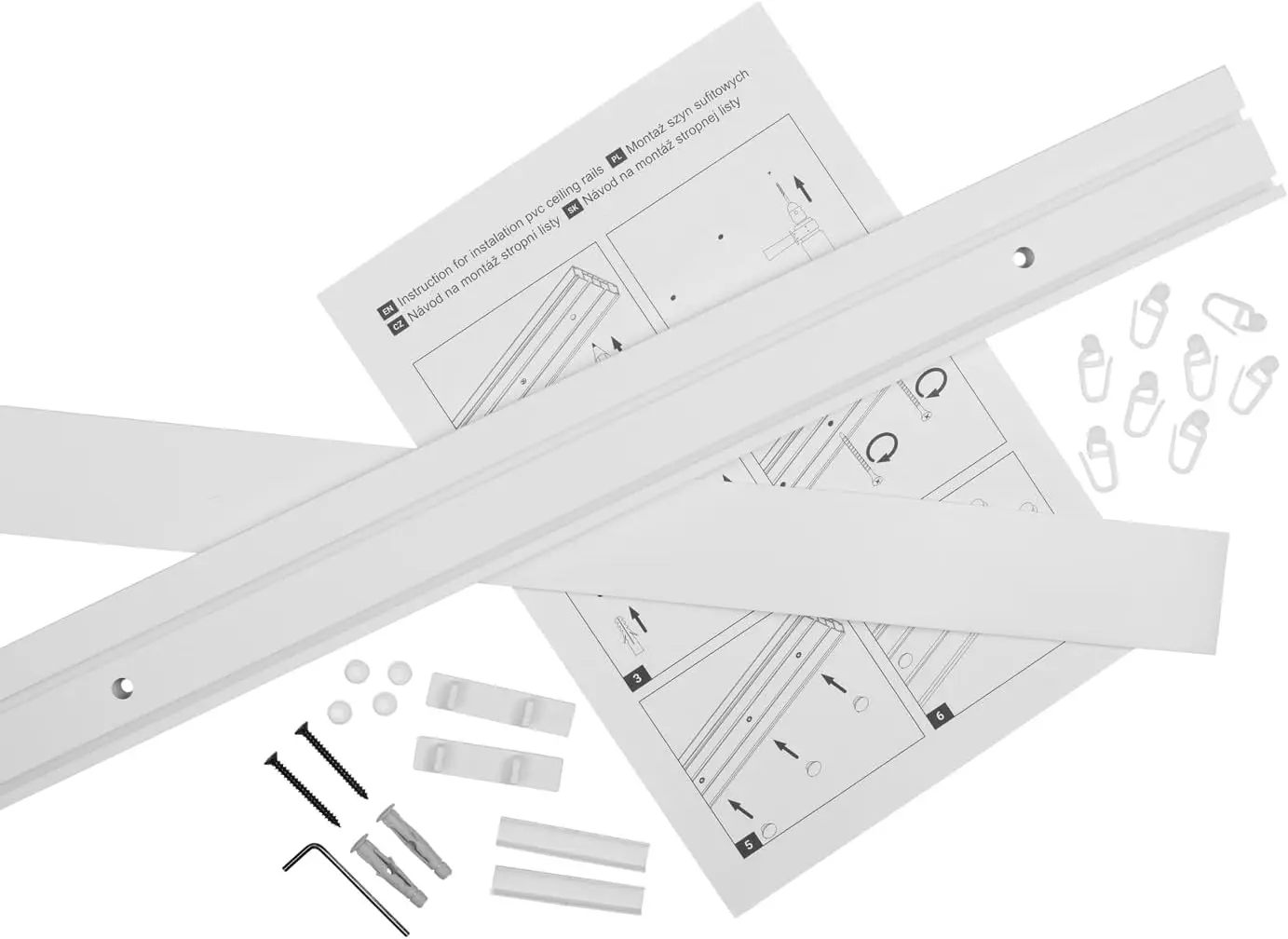 Riel para Cortinas, Riel para Cortinas de 2 Vías, Hecho de Plástico, Riel para Cortinas de Techo con Cubierta y Clip - TopDealBox