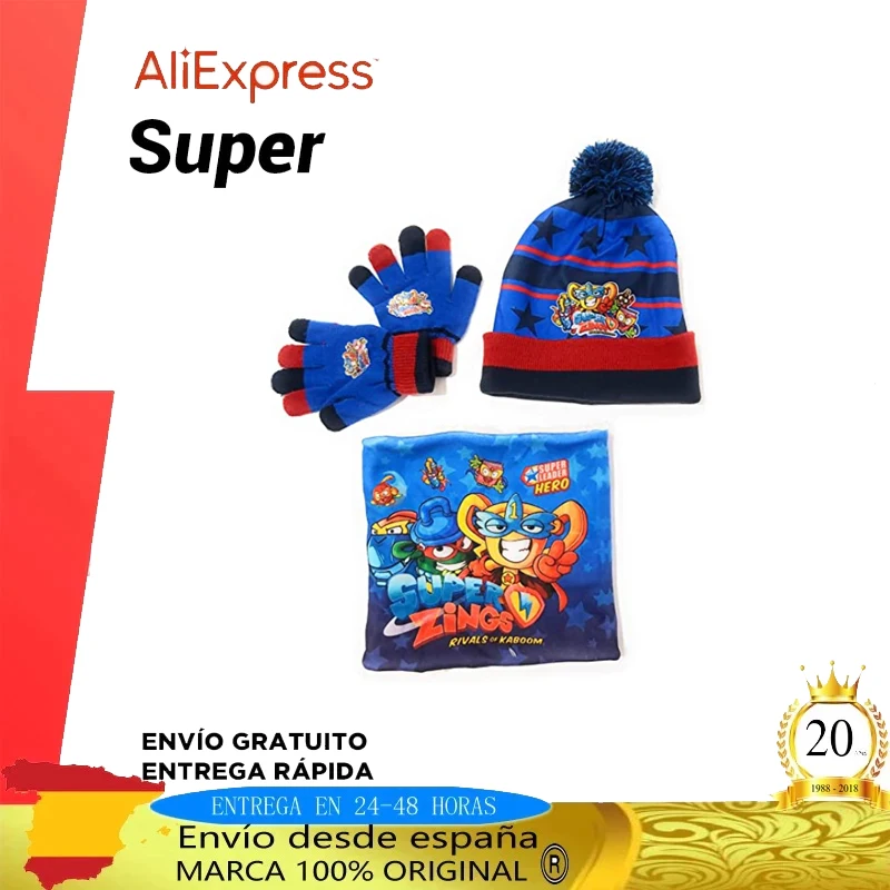SET 3 Gorro+ braga de cuello + Guantes para niños - Set de invierno, Super Zings - TopDealBox