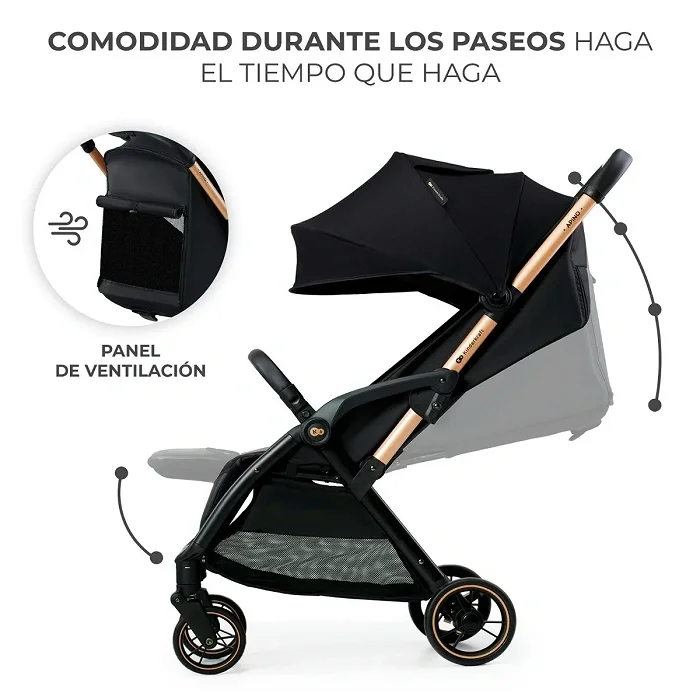 Silla de paseo ligera Apino Kinderkraft con plegado automático Negro carricoche bebe - TopDealBox