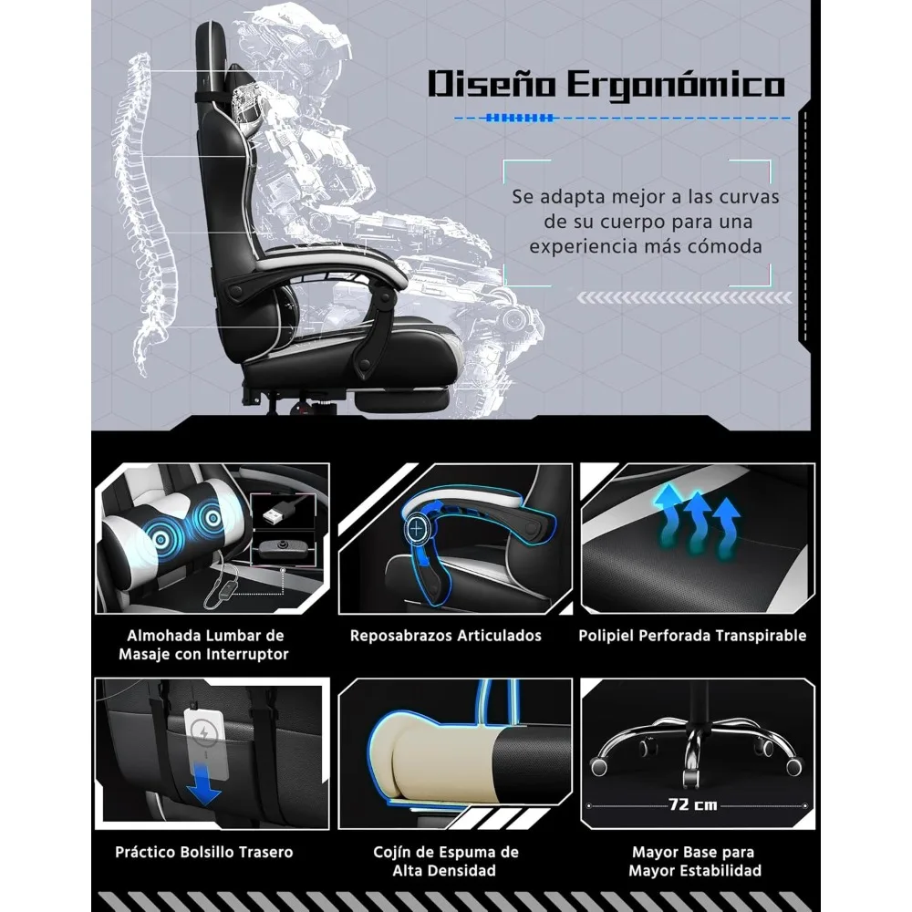 ♡Vista rápidaSilla ergonómica para juegos con masaje, silla para jugadores de carreras Kawaii y reposapiés, sillas para juegos, silla para juegos de oficina con reposacabezas Gami182.39 EUREUR 1455.63Destacado
