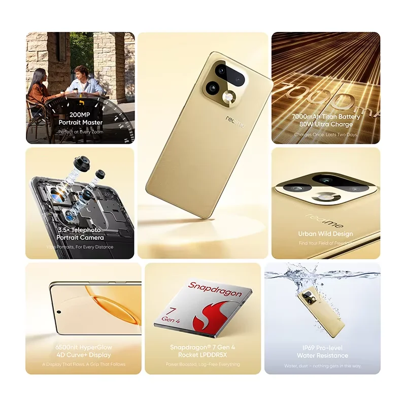Smartphone realme 16 Pro Plus con pantalla AMOLED curva de 6.8 pulgadas y 144Hz, chipset Snapdragon 7 Gen4, cámara de 200MP, batería de 7000mAh y carga de 80W. - TopDealBox