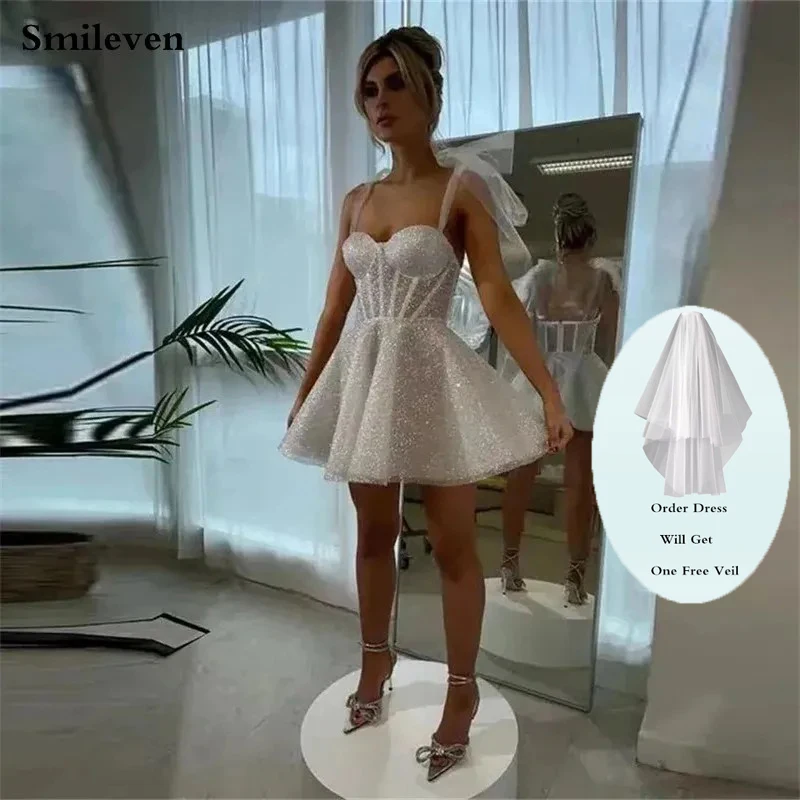 ♡Vista rápidaSmileven Vestido de novia corto línea A escote corazón brillo brillante vestidos de novia Mini lazos Correa Vestido de novia 2024 personalizado67.39 EUREUR 140.13Destacado★★★★★★5.0