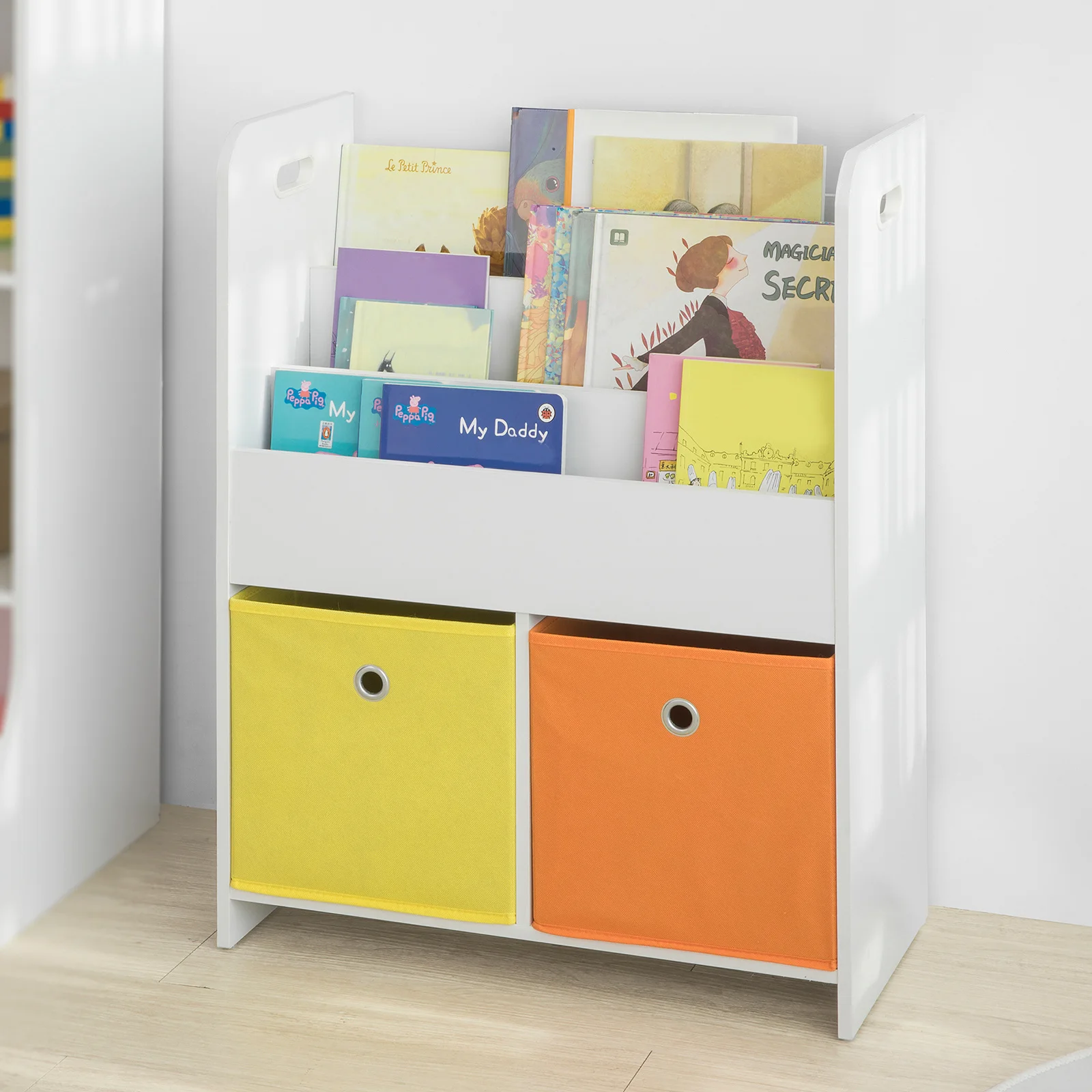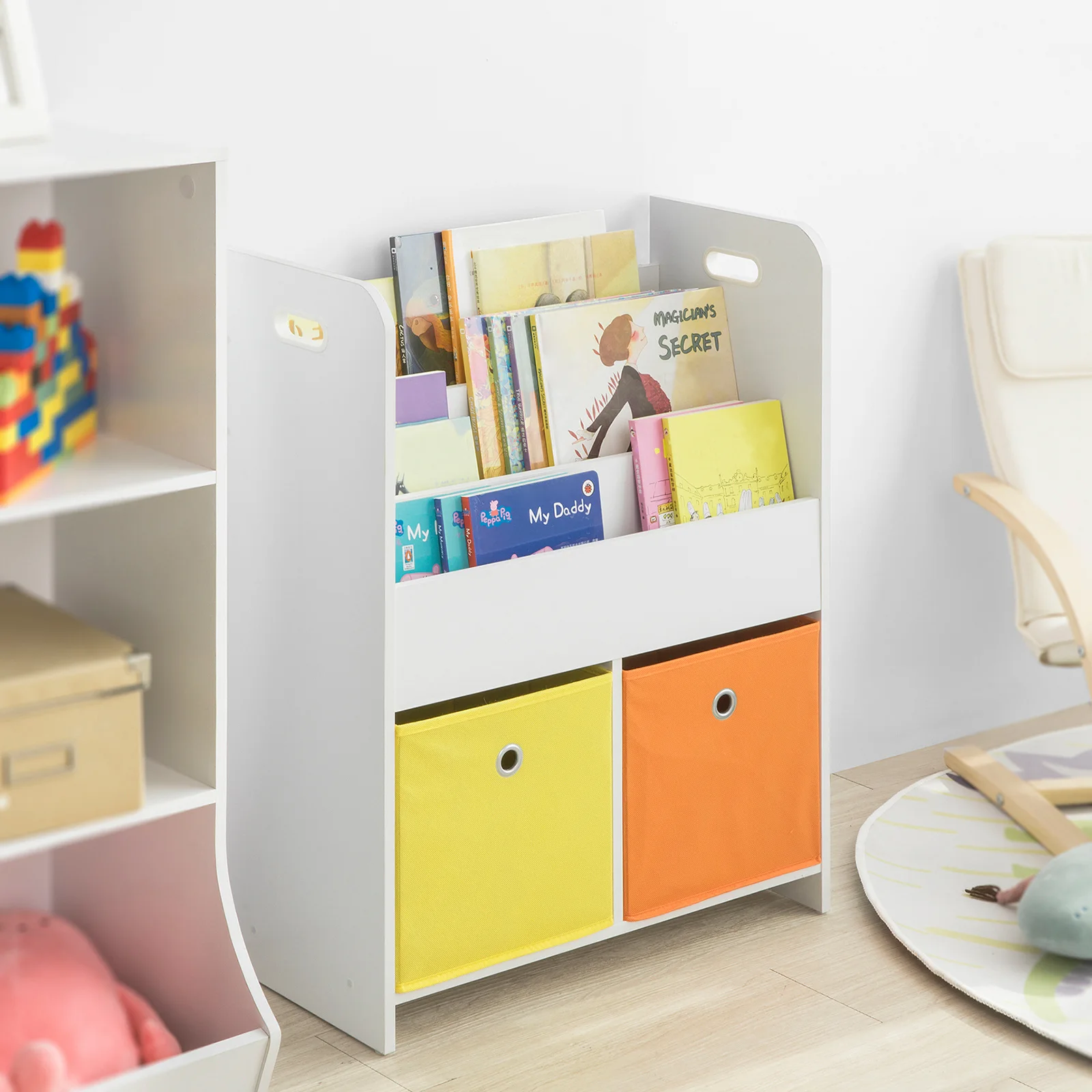 SoBuy KMB27-W estantería infantil con 3 compartimentos de almacenamiento y 2 estantes de almacenamiento para juguetes de boxeo de tela para niños - TopDealBox