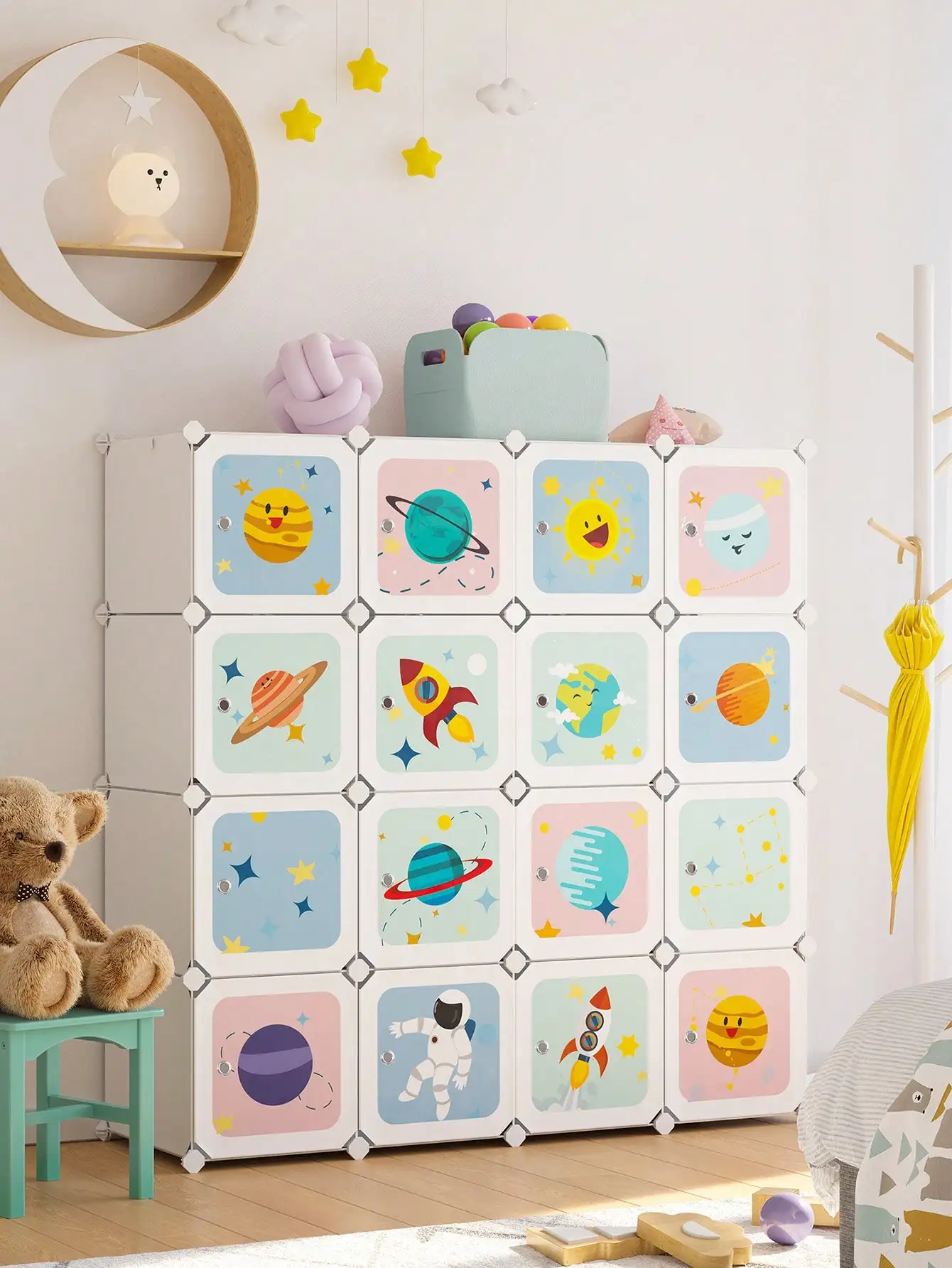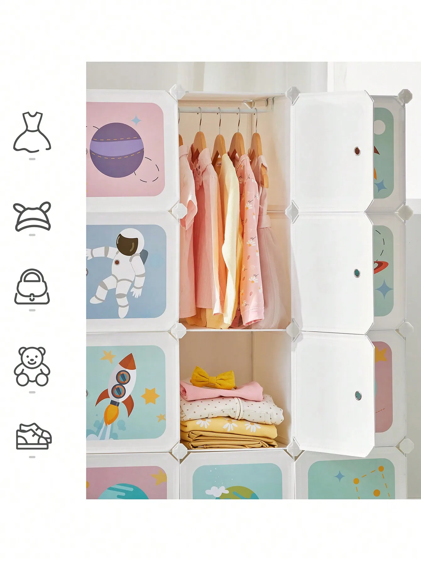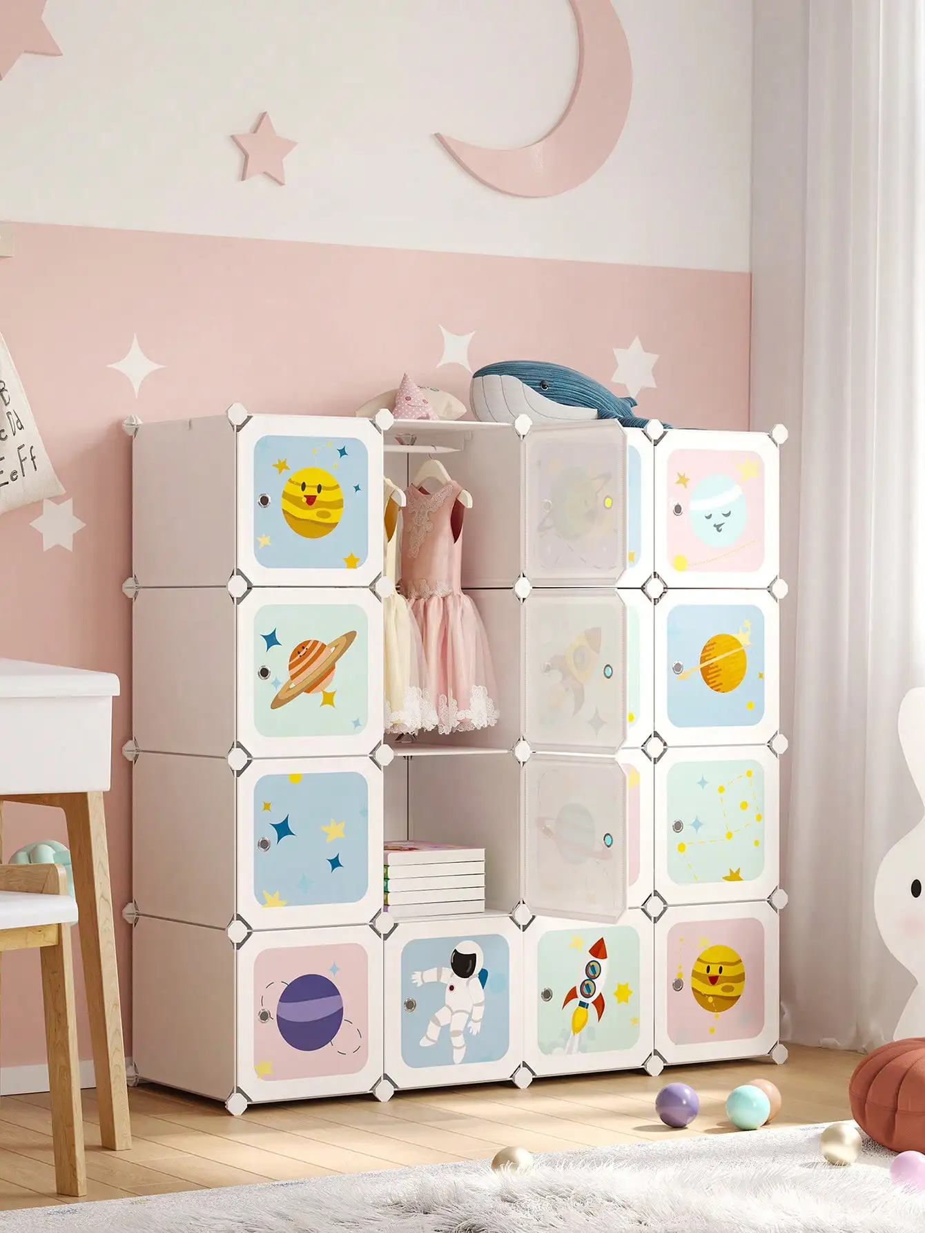 SONGMICS Armario infantil de 16 cubos: armario modular con puertas. Estantería de plástico,4 barras para colgar ropa, zapatos, juguetes.123x41x123 cm - TopDealBox