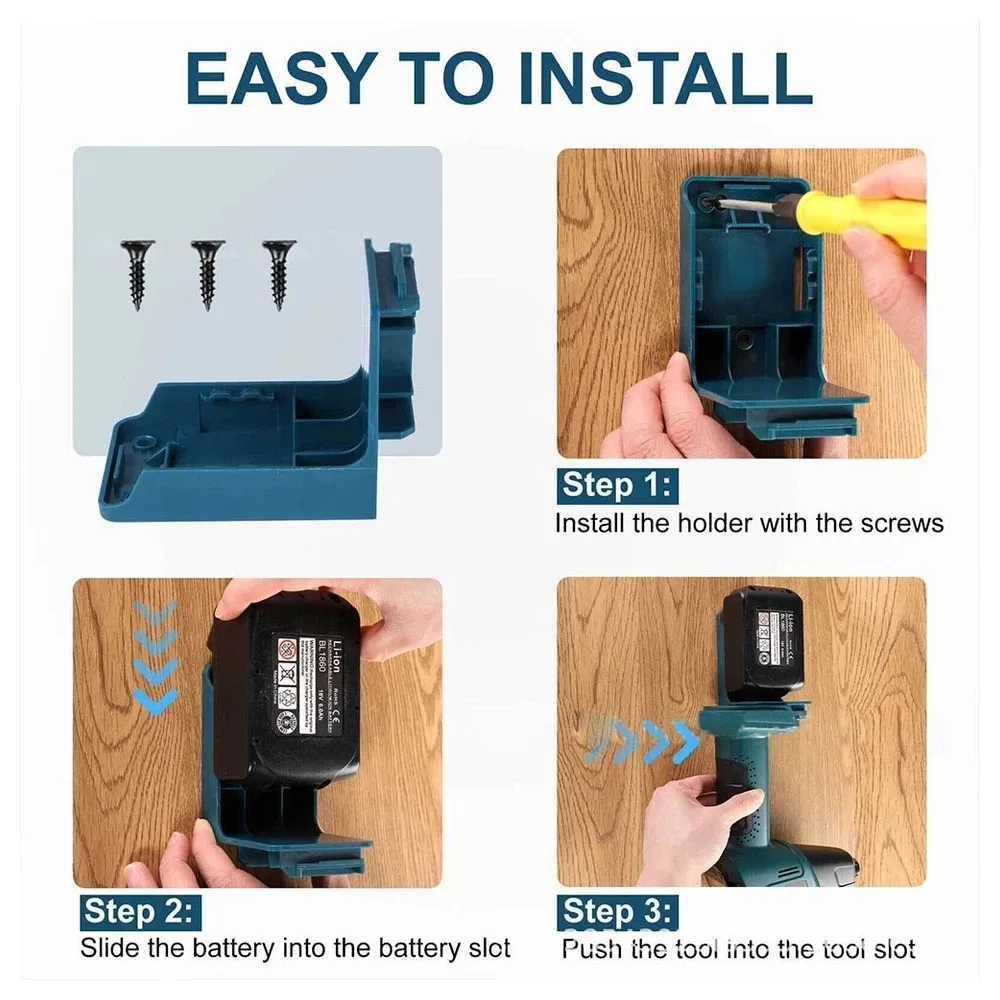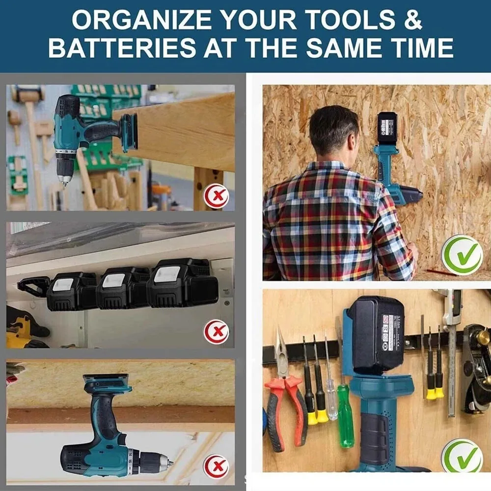 Soporte de montaje para batería de herramienta eléctrica 2 en 1, soporte de almacenamiento para herramientas con batería Makita, con tornillos para organización, 1/2/5 Uds. - TopDealBox