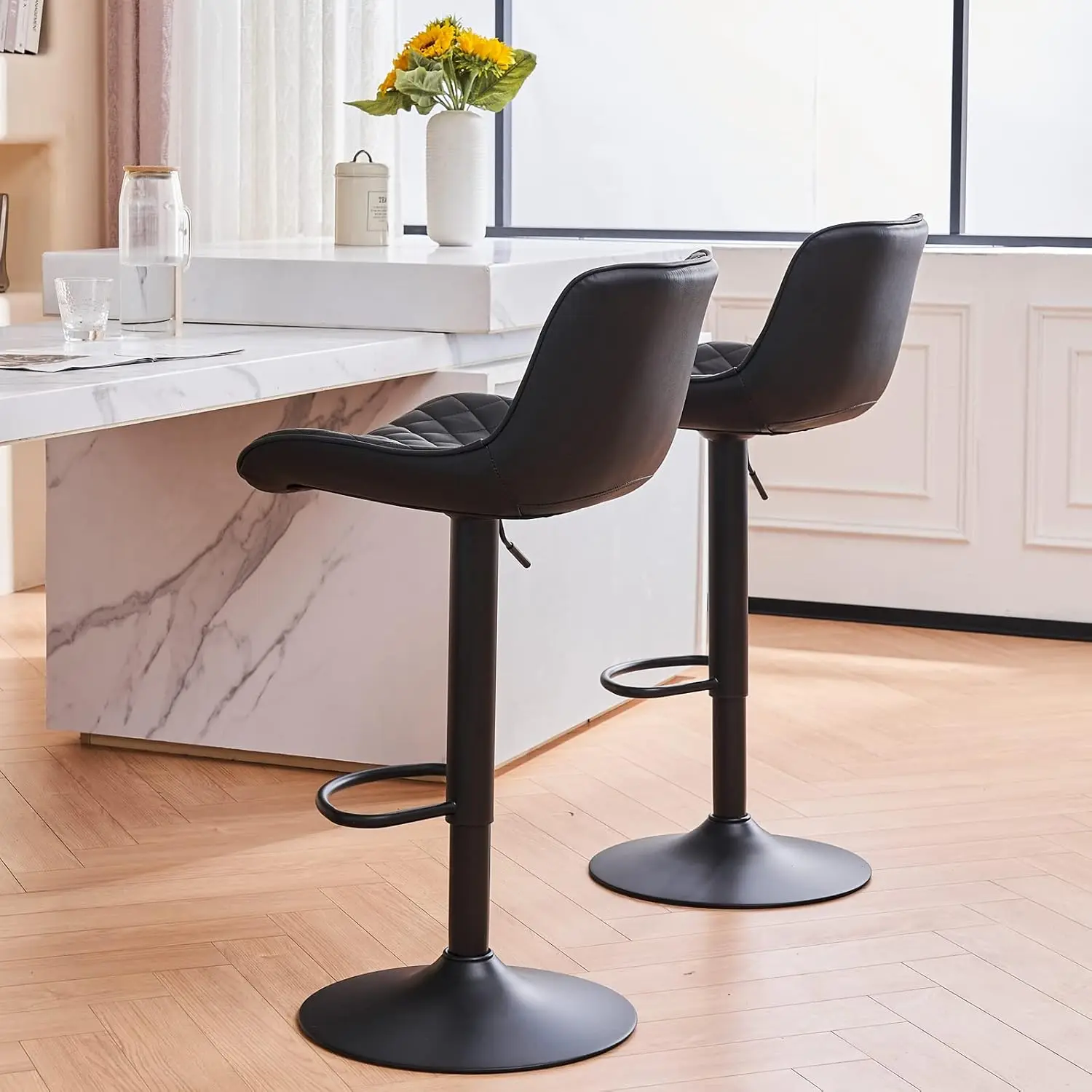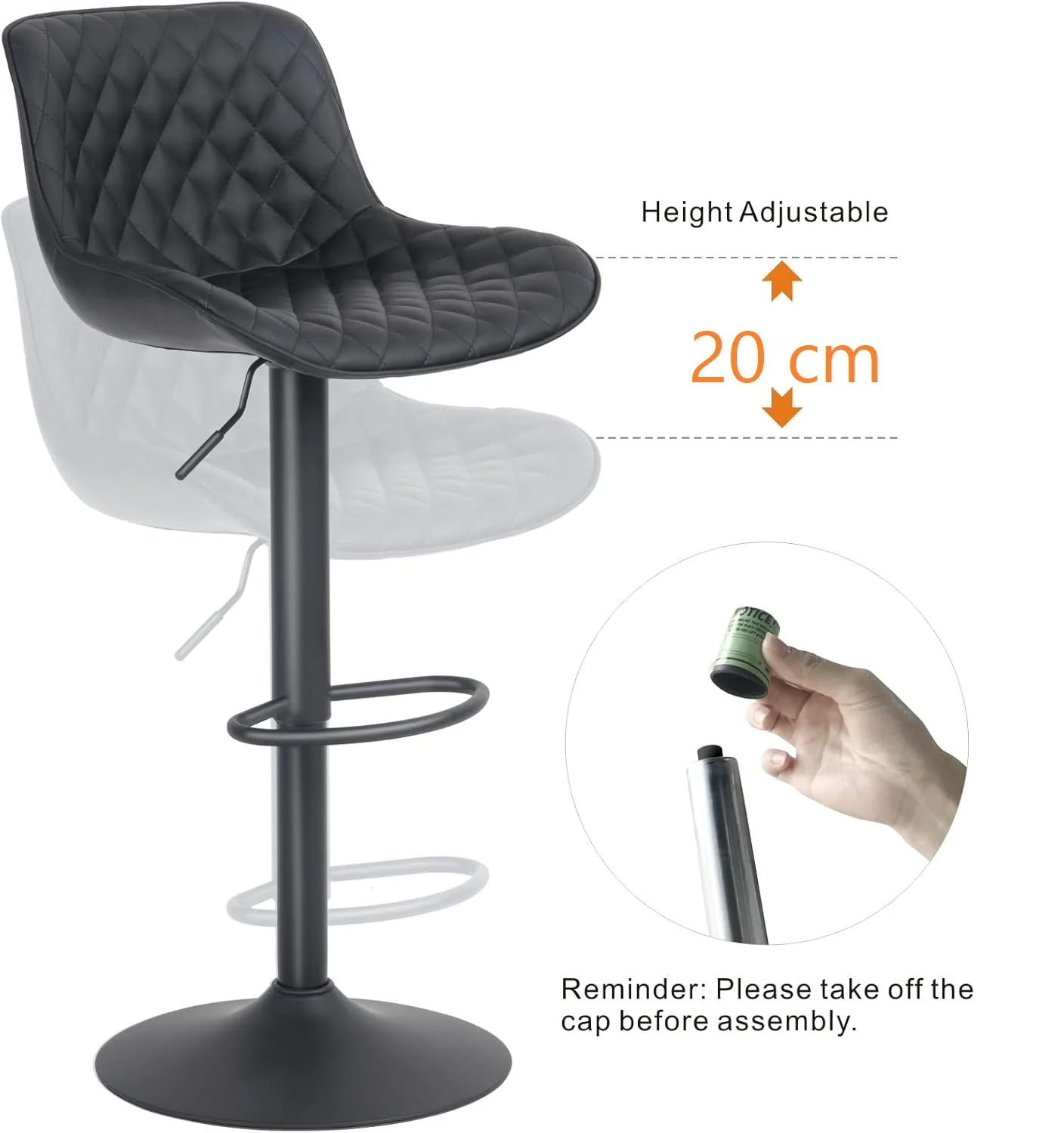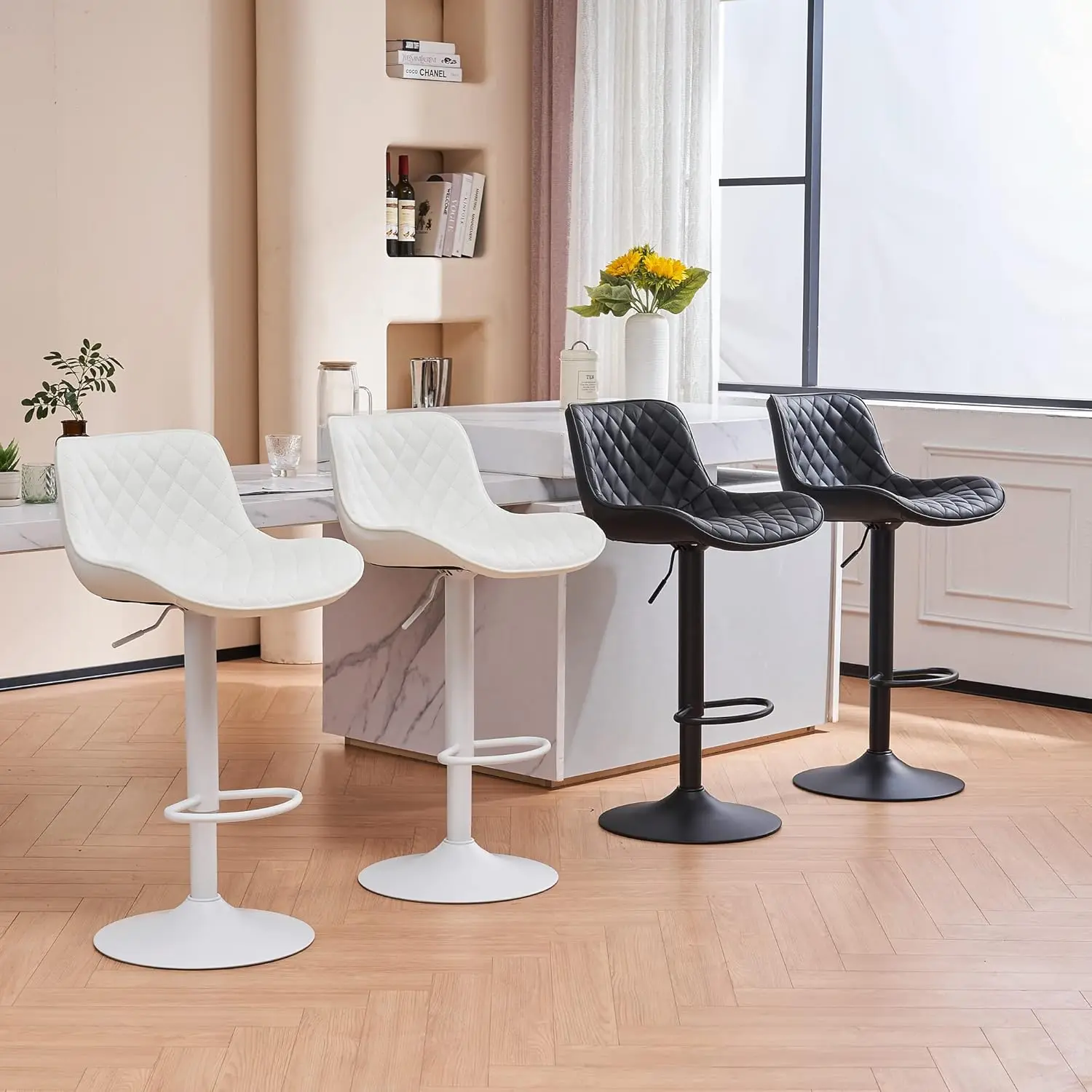 Taburete de bar moderno de 2 piezas, altura ajustable, giratorio, acolchado, con respaldo de cuero, para bar, isla de cocina, mostrador, blanco/negro/gris claro - TopDealBox