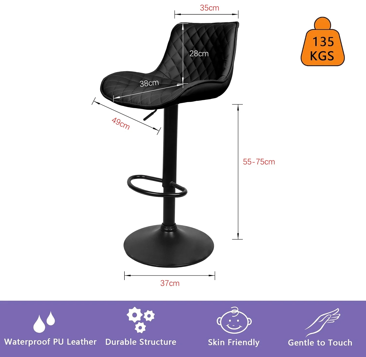 Inicio > Muebles > Muebles de bar Taburete de bar moderno de 2 piezas, altura ajustable, giratorio, acolchado, con respaldo de cuero, para bar, isla de cocina, mostrador, blanco/negro/gris claro Información de envío