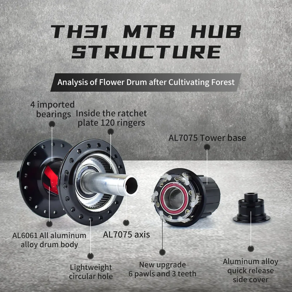 TANKE 120 Click MTB Hub, tambor de rodamiento 6 NBK, para freno de disco de bicicleta de montaña de 8,9,10,11,12 velocidades, accesorio de bicicleta, 32 agujeros, 36 agujeros