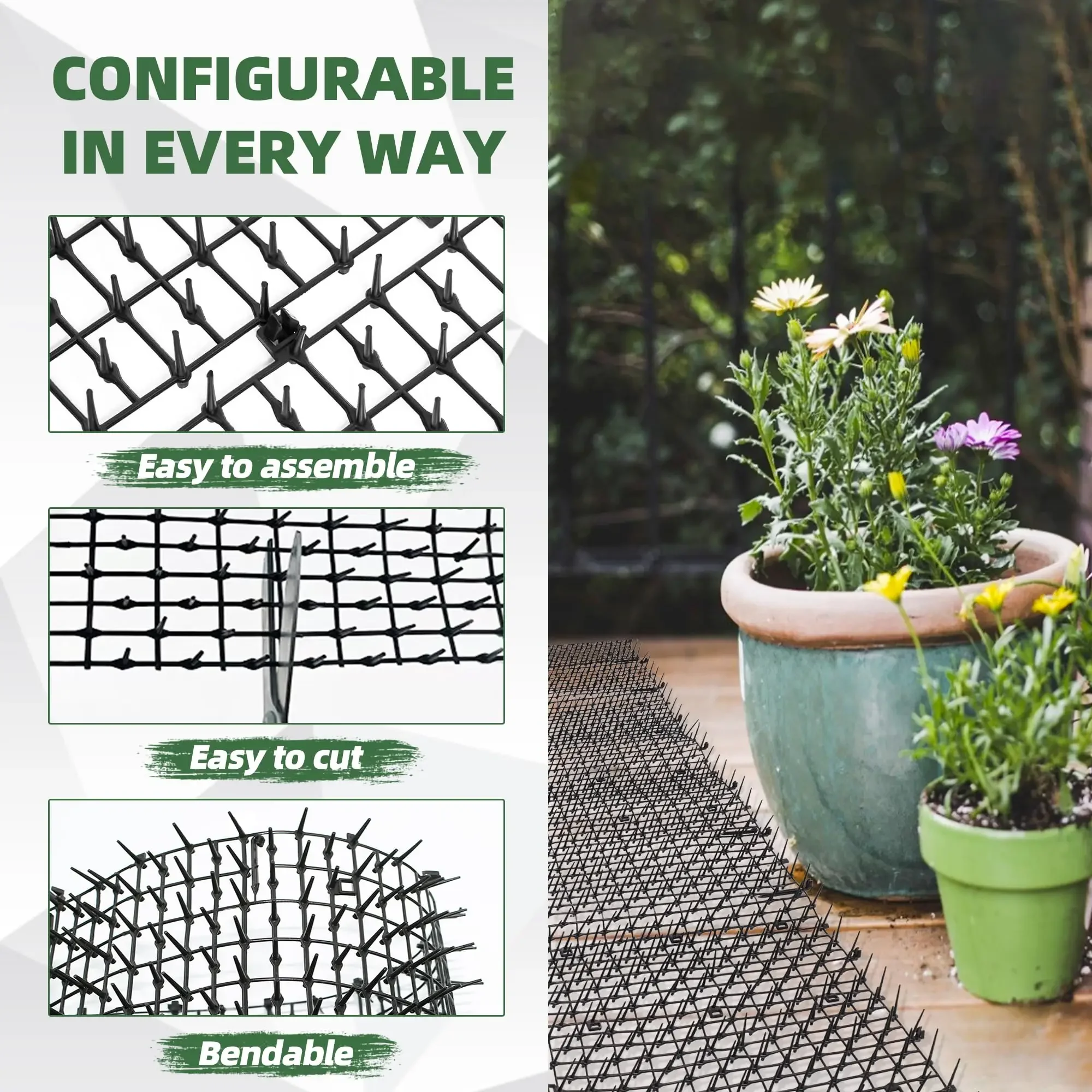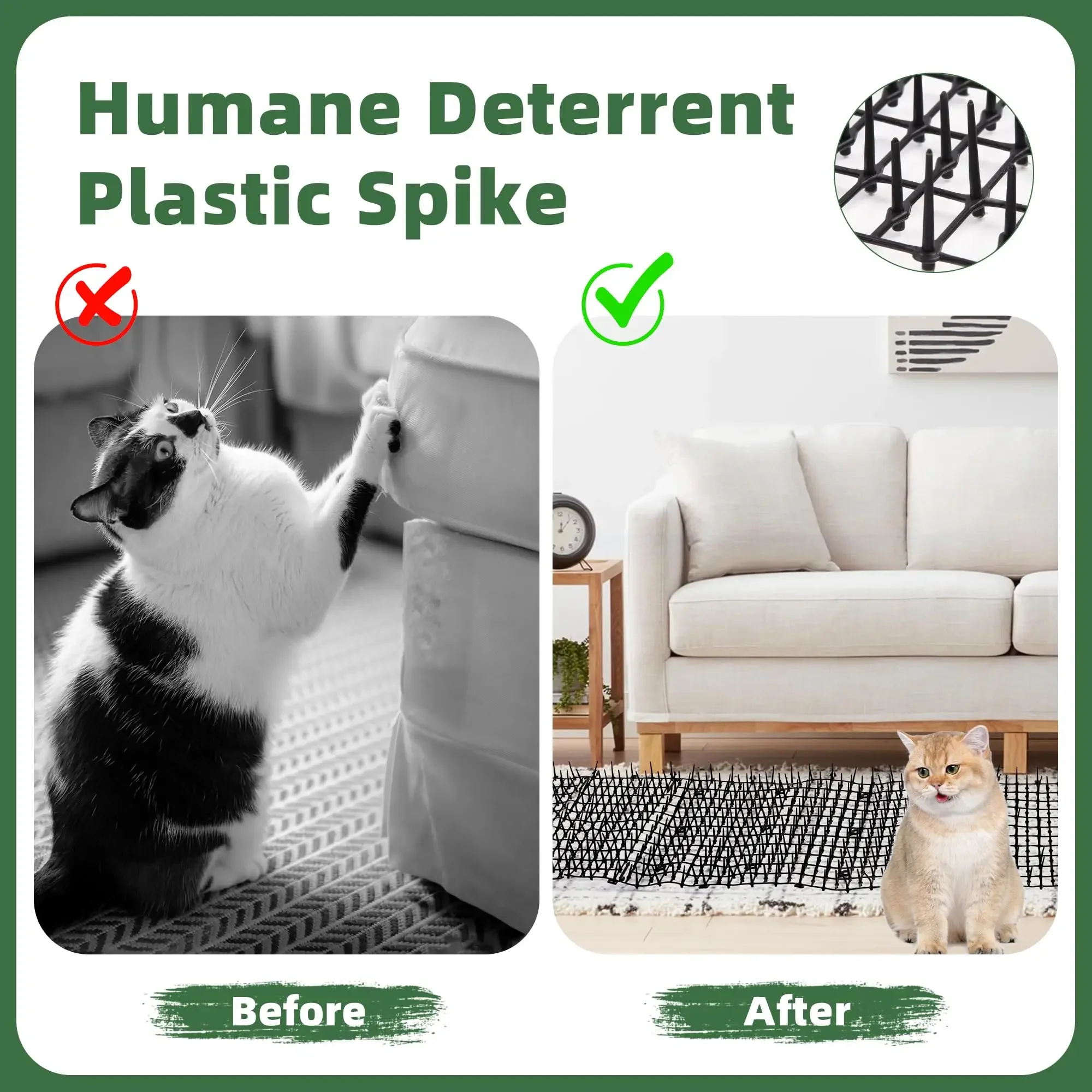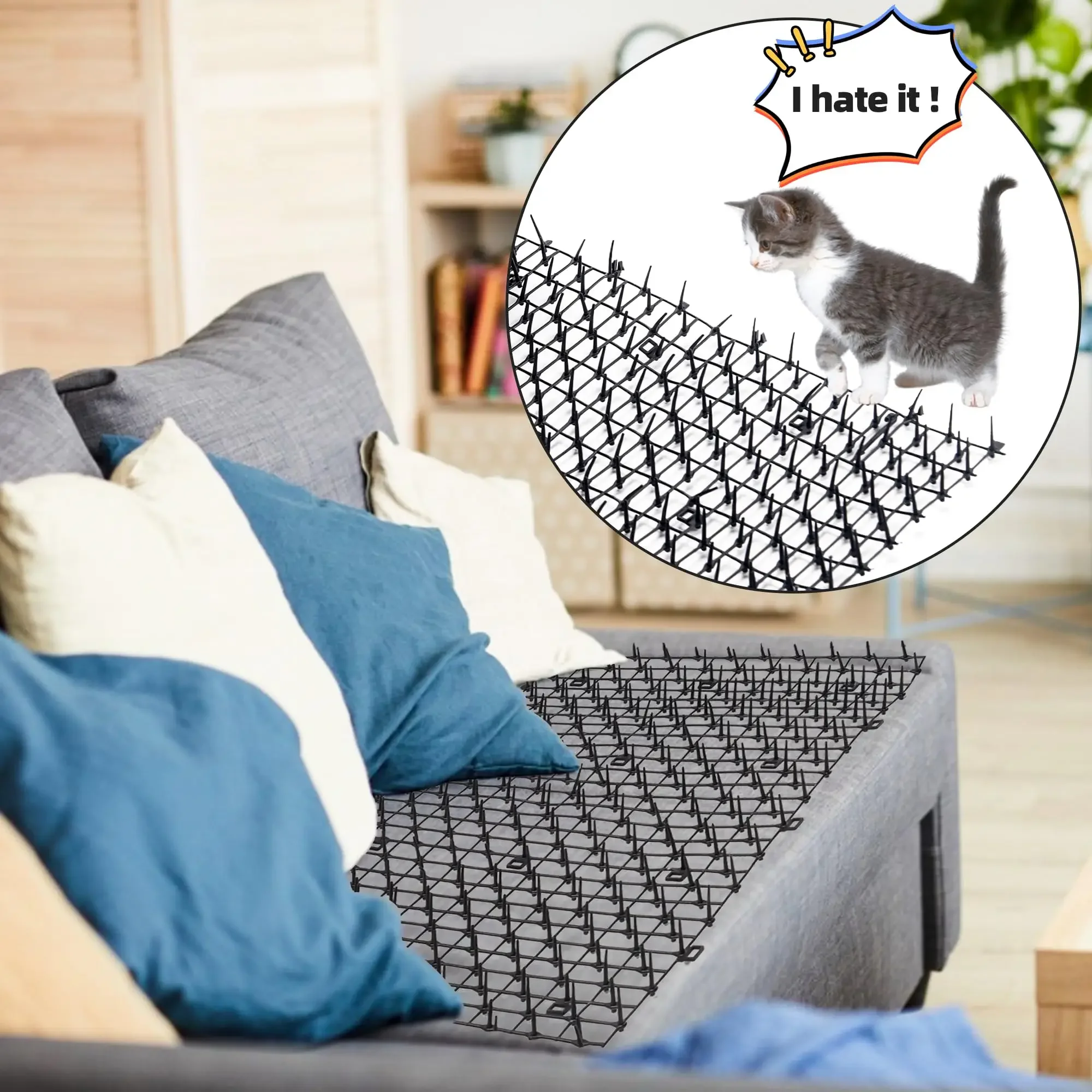 Tapete Repelente de Animales de 2 Metros para Perros y Gatos, Disuasor de Plástico con Púas ​ Alfombra Antideslizante de Polipropileno para Gatos, Herramientas de Jardinería para el Hogar - TopDealBox